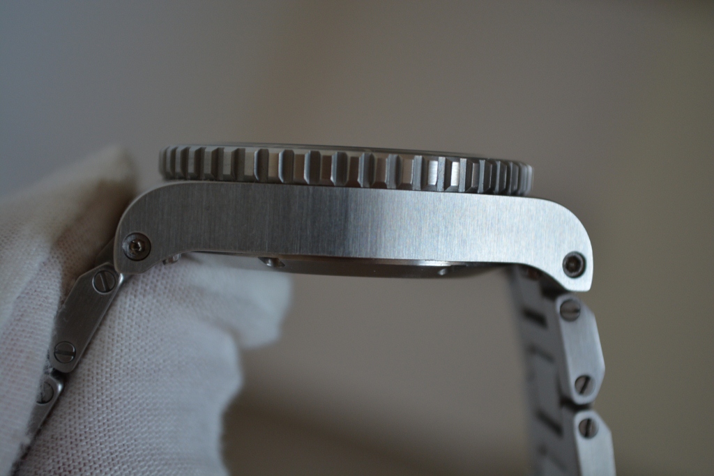 Диаметр корпуса 38 мм (без учёта заводной головки), толщина корпуса 12 мм, толщина браслета 20 мм, lug-to-lug 46 мм, вес с браслетом 183 г