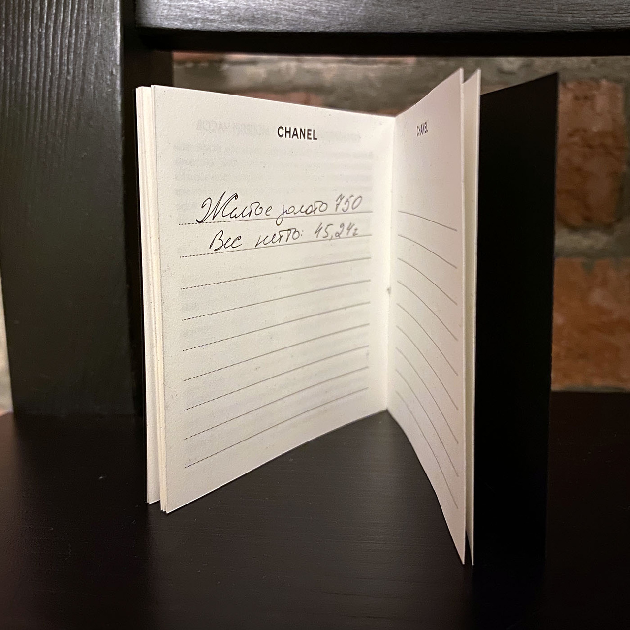 Полный комплект всего что прилагалось в бутике: две коробки (внутренняя и внешняя), внутренняя подушка. Также в комплекте - специальный кожаный футляр для переноски и хранения изделия. Все это в бутиковом пакете Chanel с камелией.