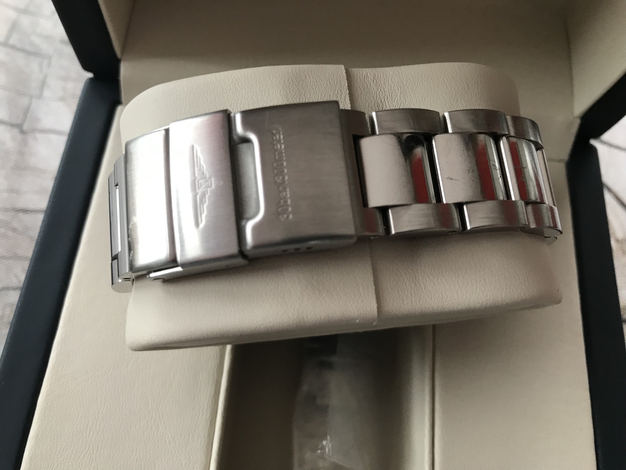 Браслет: Нержавеющая сталь 316L. Складная застежка с двойной блокировкой, встроенная система увеличения длины для дайвинга.