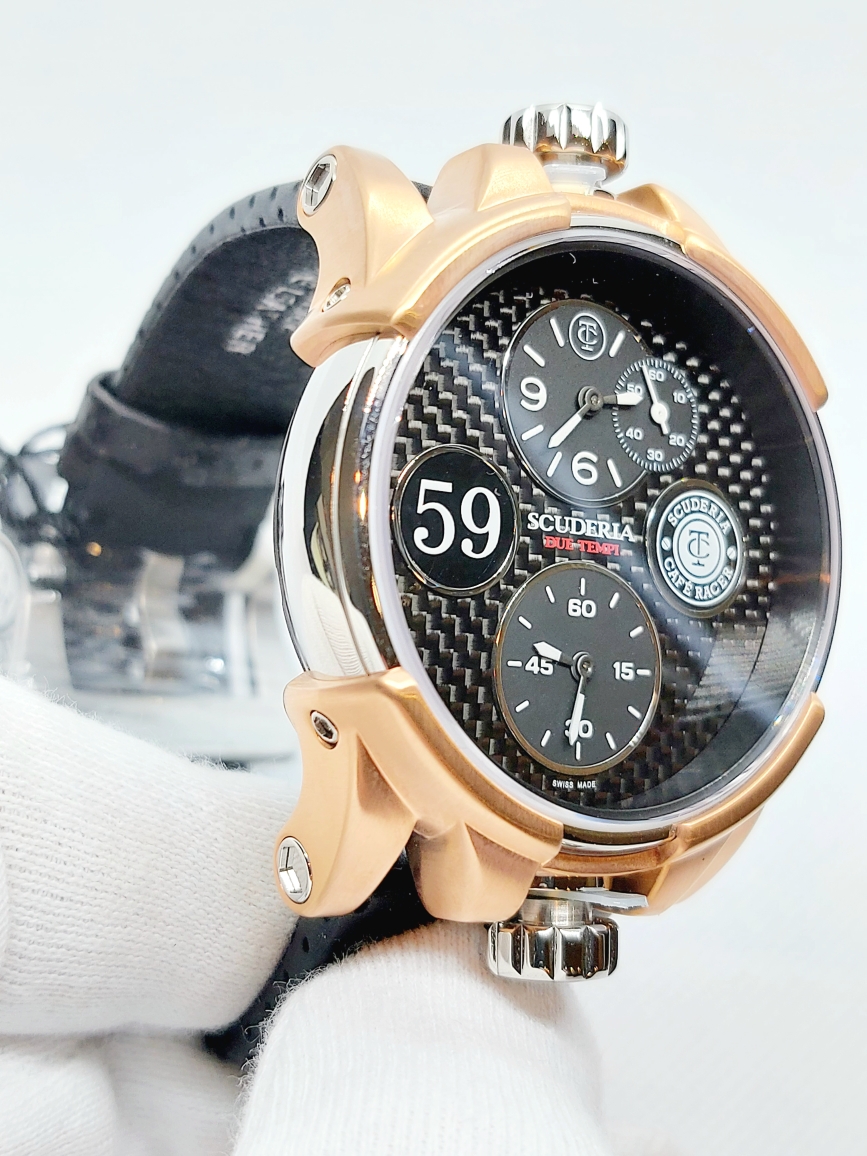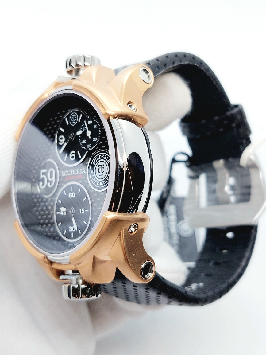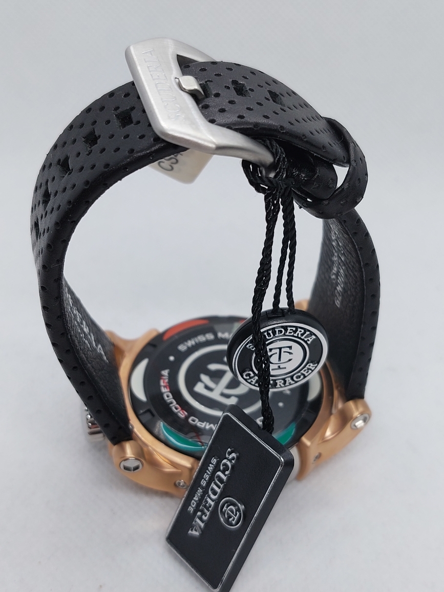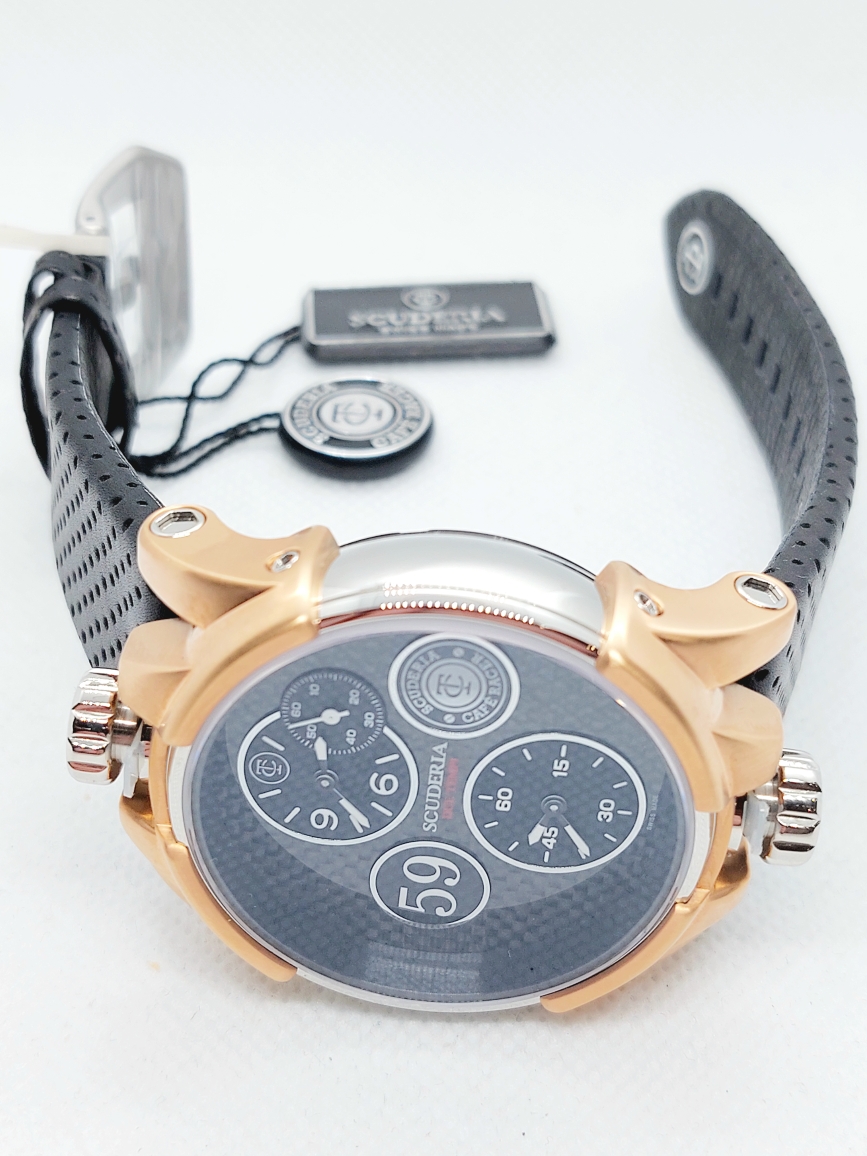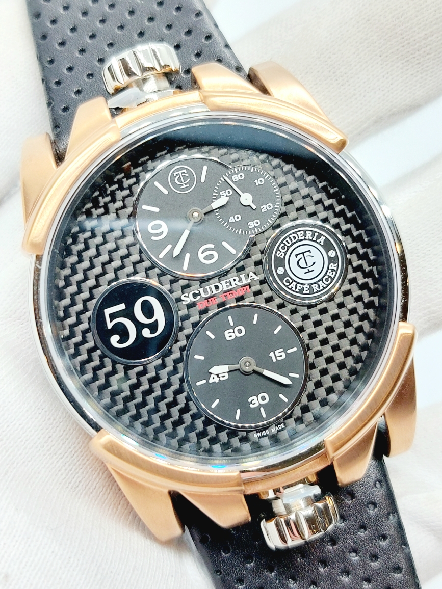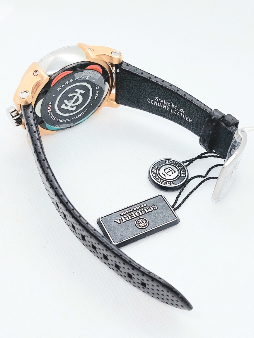 На отметке 3х часов изображен логотип бренда Scuderia и название коллекции Cafe Racer.