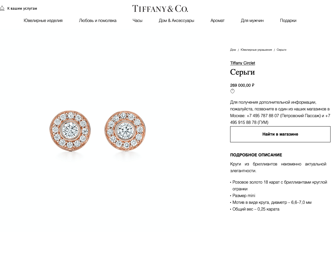 СЕРЬГИ ПУСЕТЫ *Tiffany & Co* CIRCLET В ЖЕЛТОМ ЗОЛОТЕ / 0,25ct.