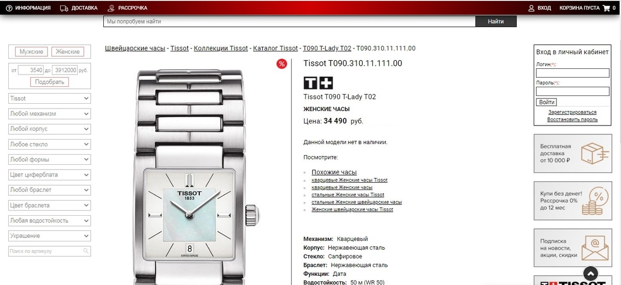 Женские / Tissot T-Collections / Браслет, перламутр / Отличный прайс! - Часовой форум Watch.ru
