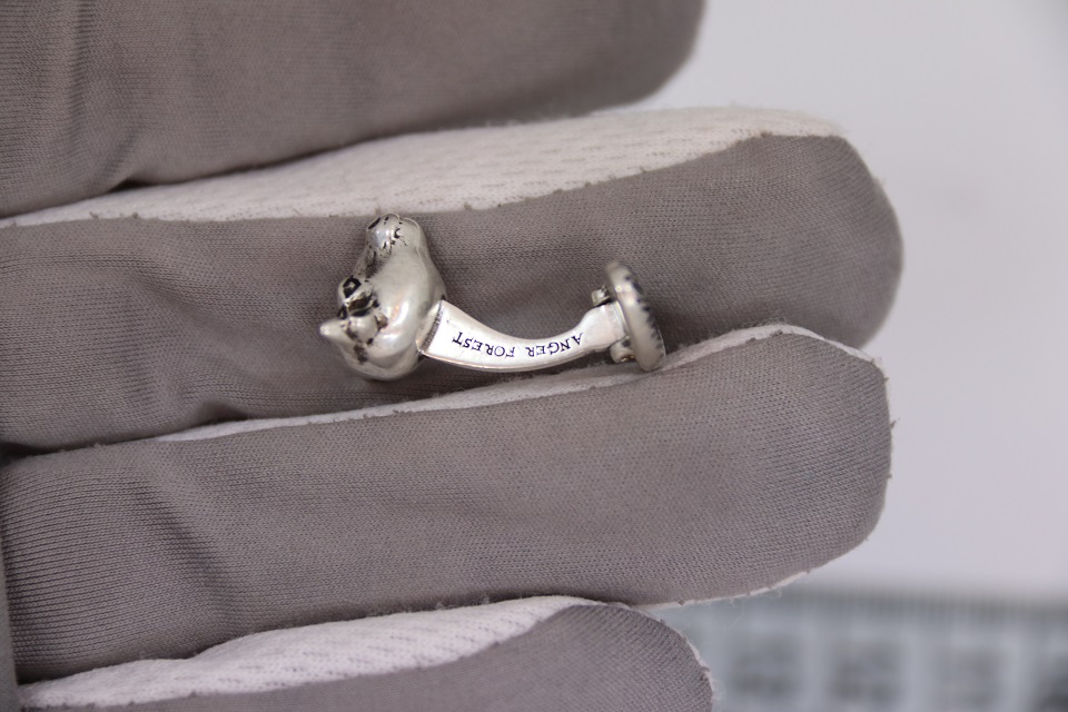 Запонки выполнены в виде серебряной головы быка с антикварным эффектом. На ножке выгравировано название название коллекции: Anger Forest.