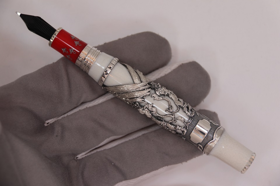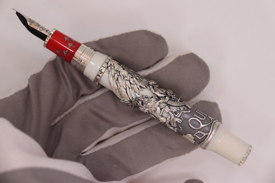 Комплект: ручка, коробка, шкатулка, замшевый чехол для ручки, флакон с чернилами, комплект документов. .