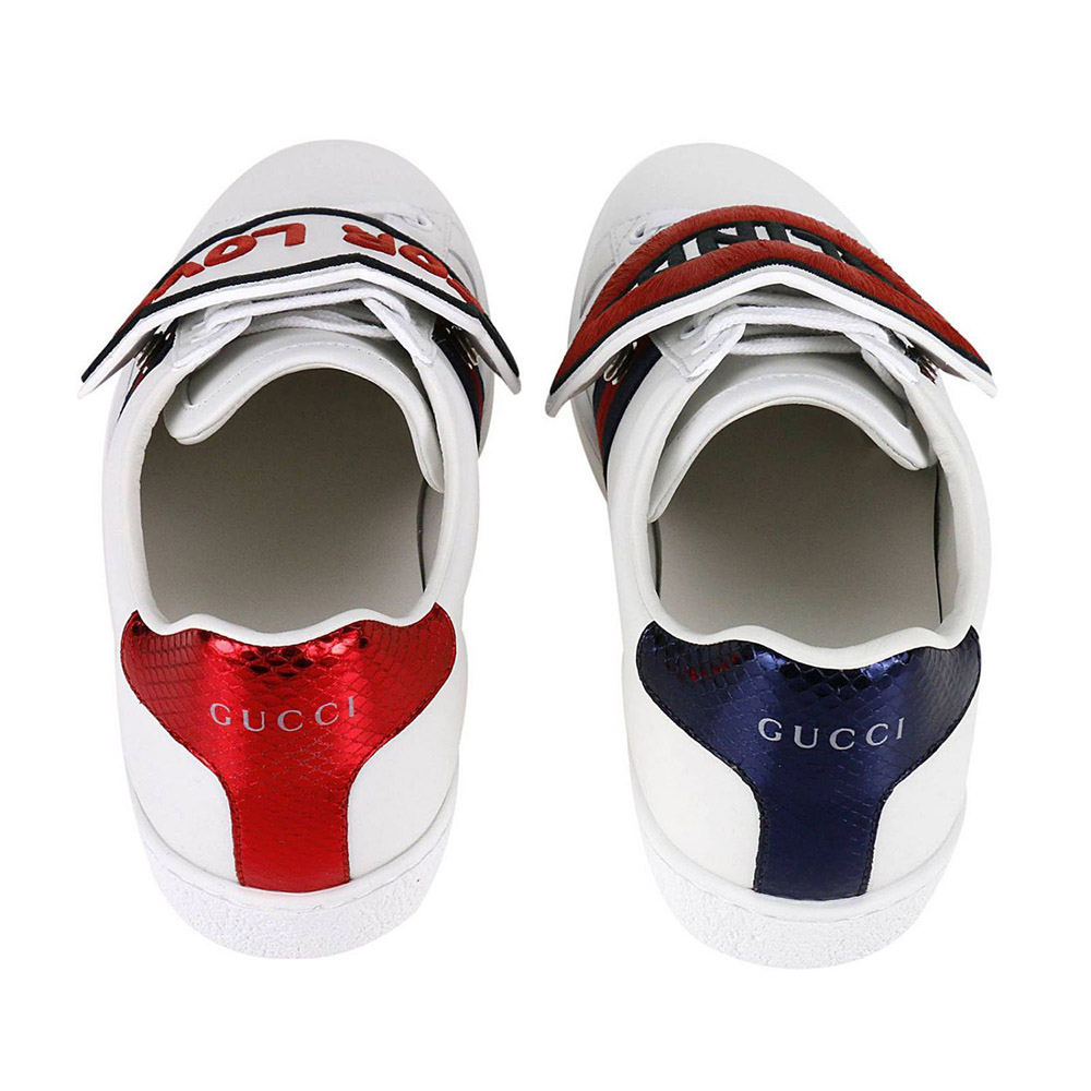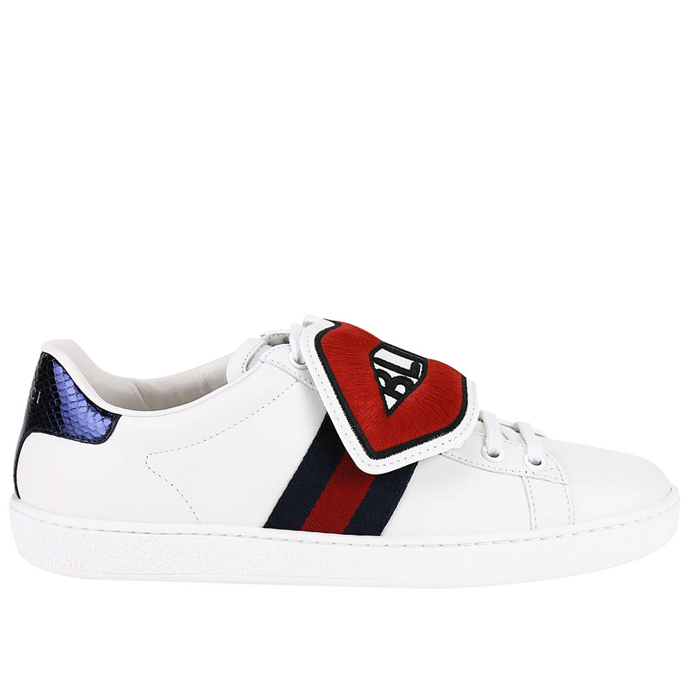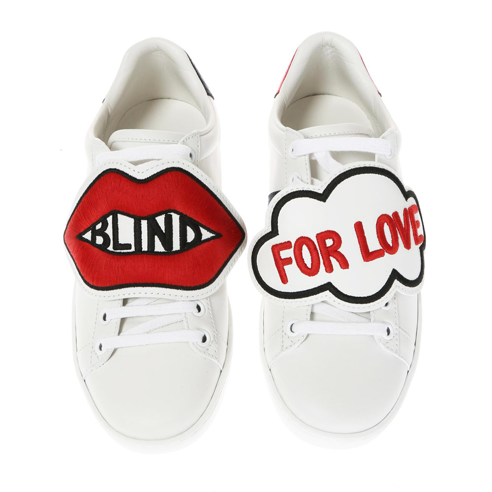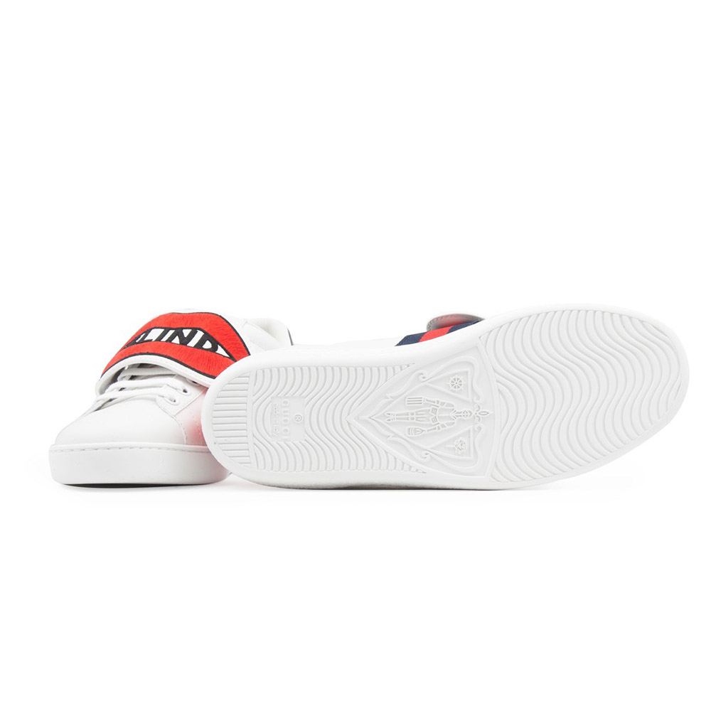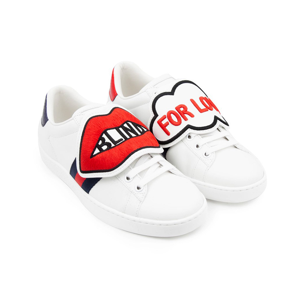 Модель-бестселлер Gucci Ace, в супер-эффектном исполнении: сникеры в этой лимитированной версии украшены крупными съемными аппликациями Blind for Love!