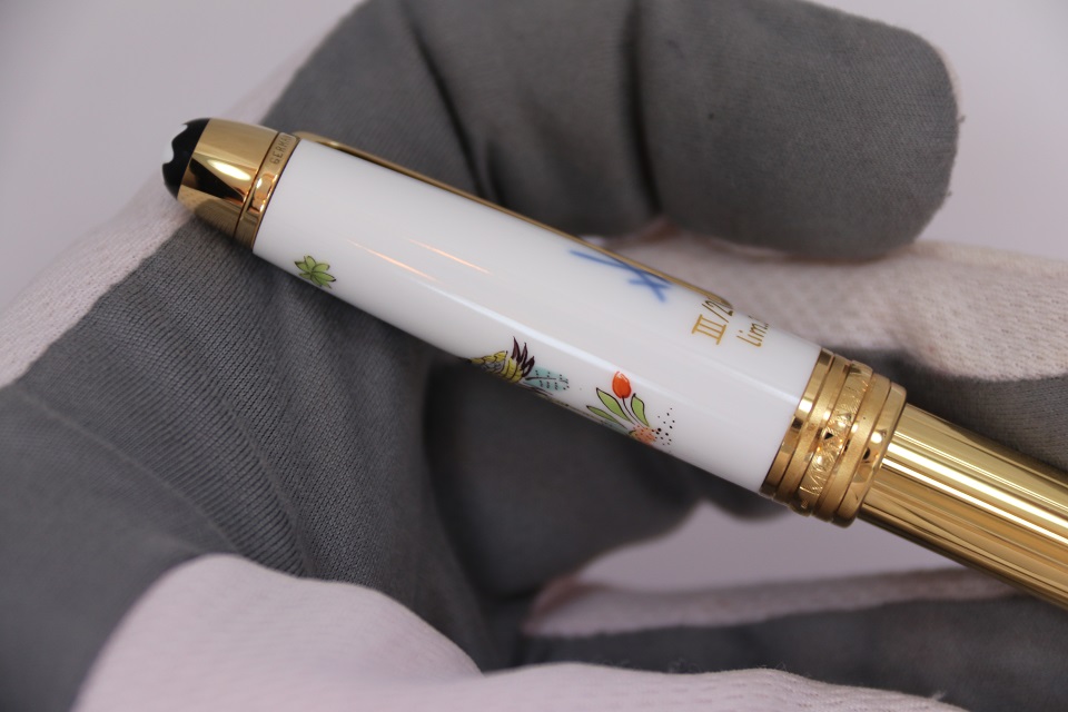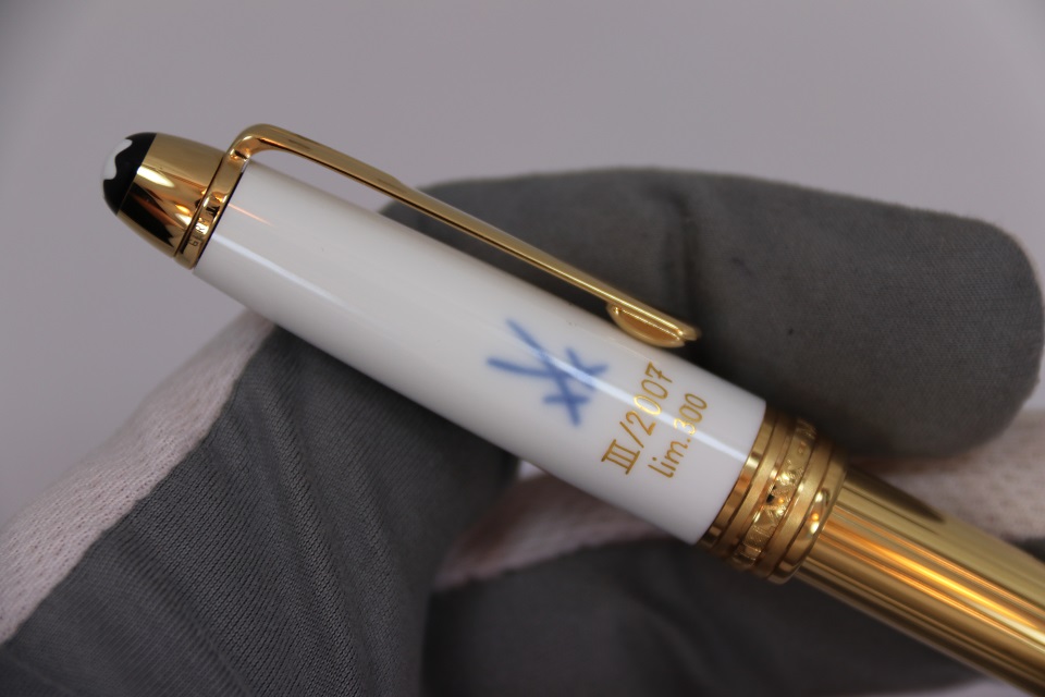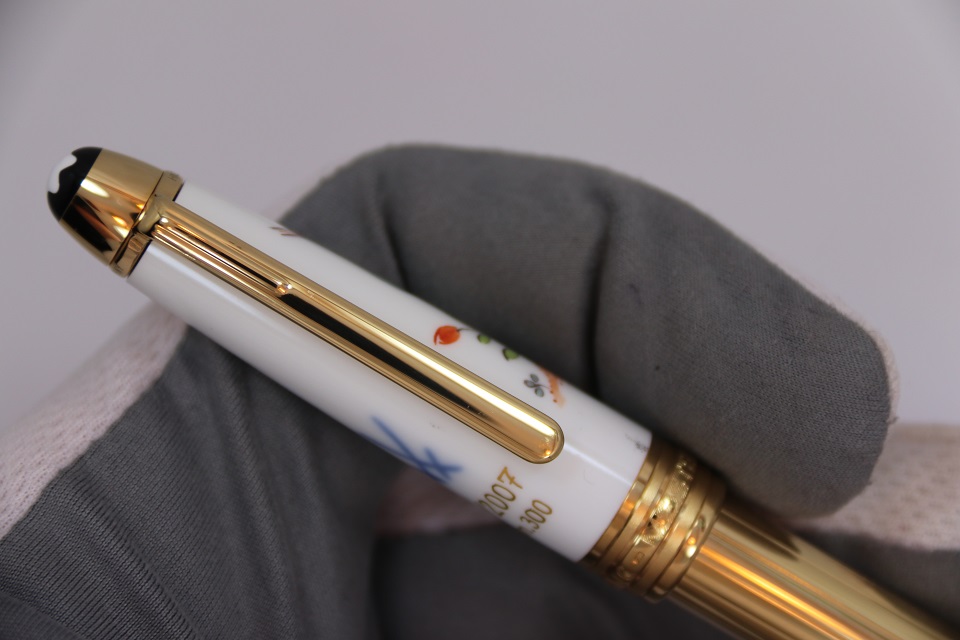 C 2003 по 2012 год компания Montblanc в содружестве с фарфоровой мануфактурой Мейсен выпускала уникальные ежегодные серии перьевых ручек. Каждая ручка выпускалась ограниченным тиражом 300 экземпляров. Колпачки ручек были выполнены из фарфора Мейсен и украшены вручную мастерами компании. Изображения, украшающие ручки этих коллекций, выполнены в трех темах: "Classical Myths" (классические мифы), "Venetian Carnival" (венецианский карнавал) и "Mythical Creatures" (мифические создания). Так же как и белая шестиконечная звезда Montblanc, являющаяся гарантом исключительного письма, - скрещенные мечи Мейсен гарантируют непревзойденное качество материала и художественной работы для каждого фарфорового колпачка.