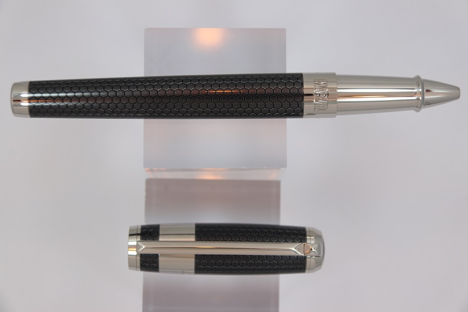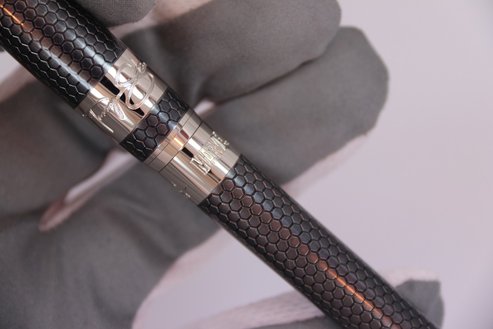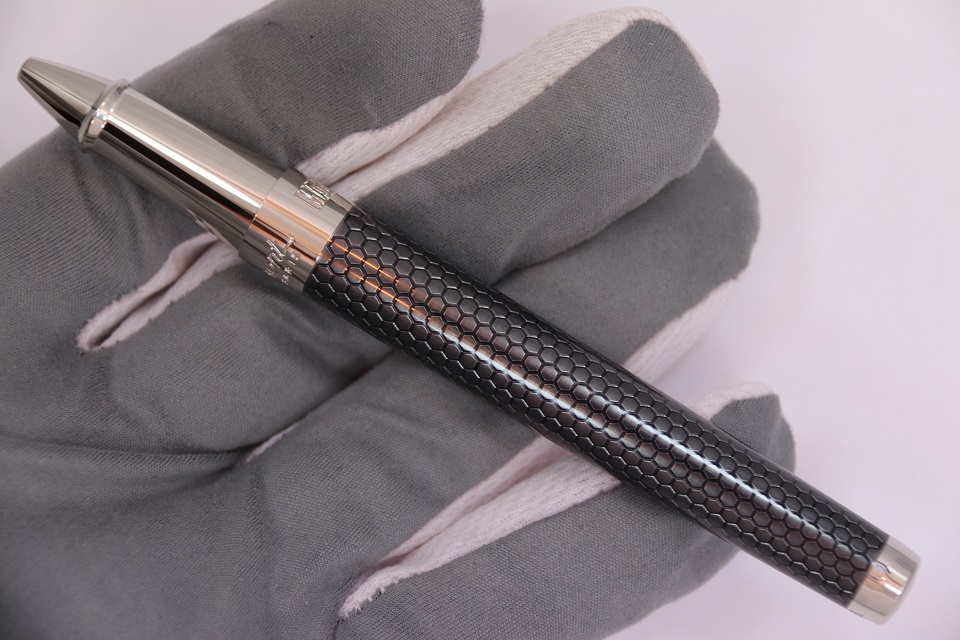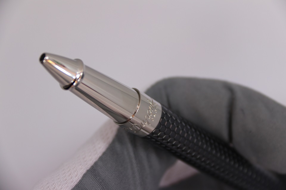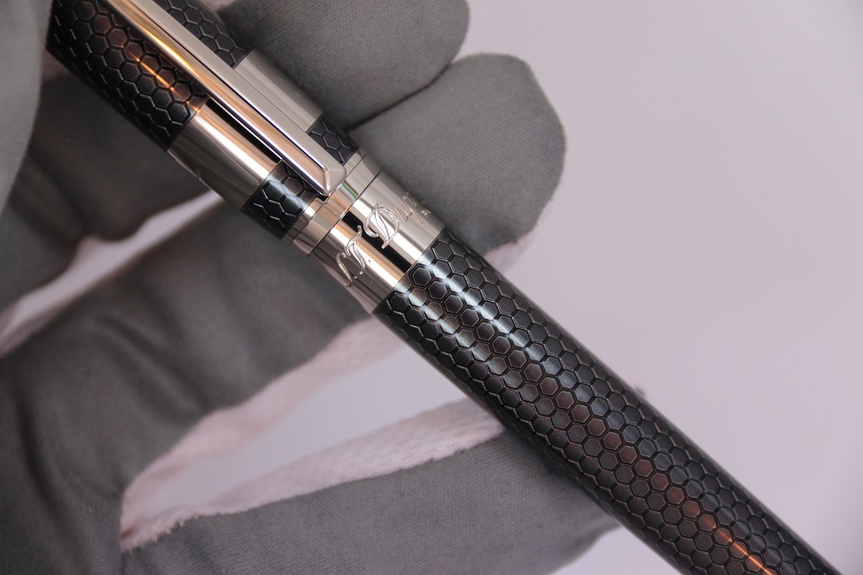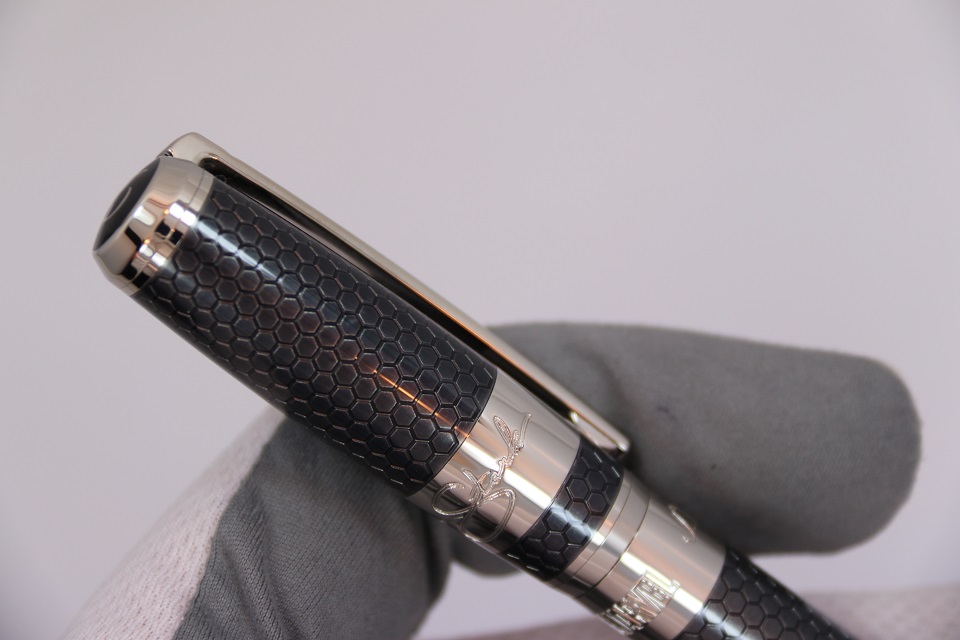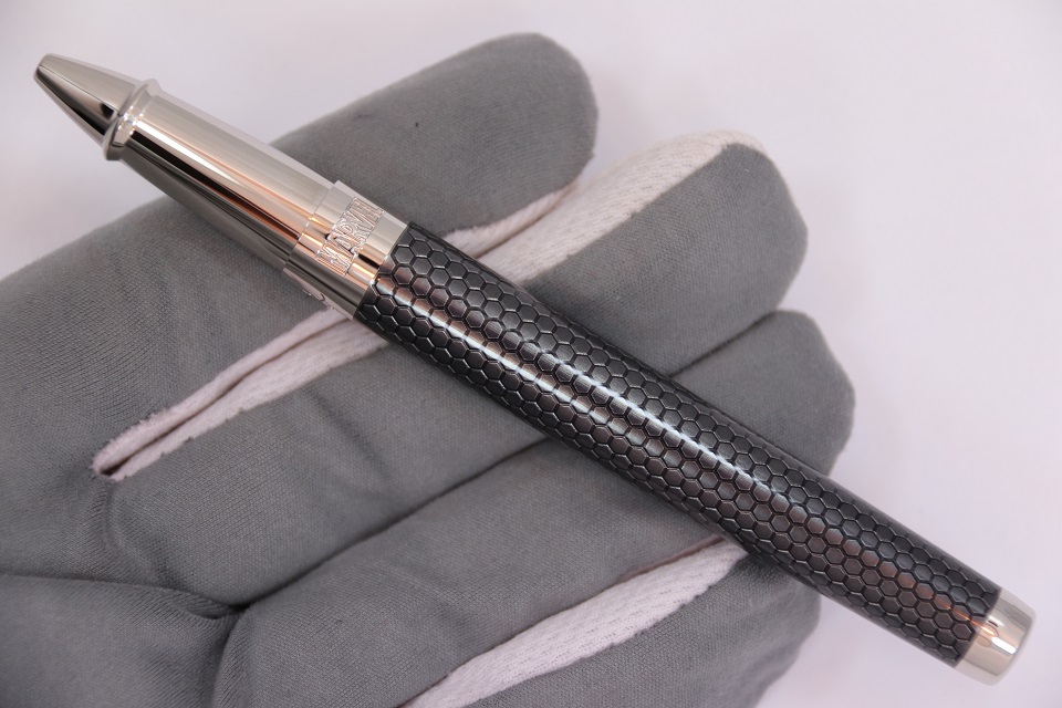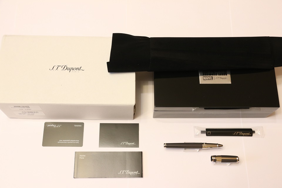 На корпусе ручки выгравирован логотипы компаний S.T. Dupont и Marvel, а на колпачке гравировка автографа Тони Старка.