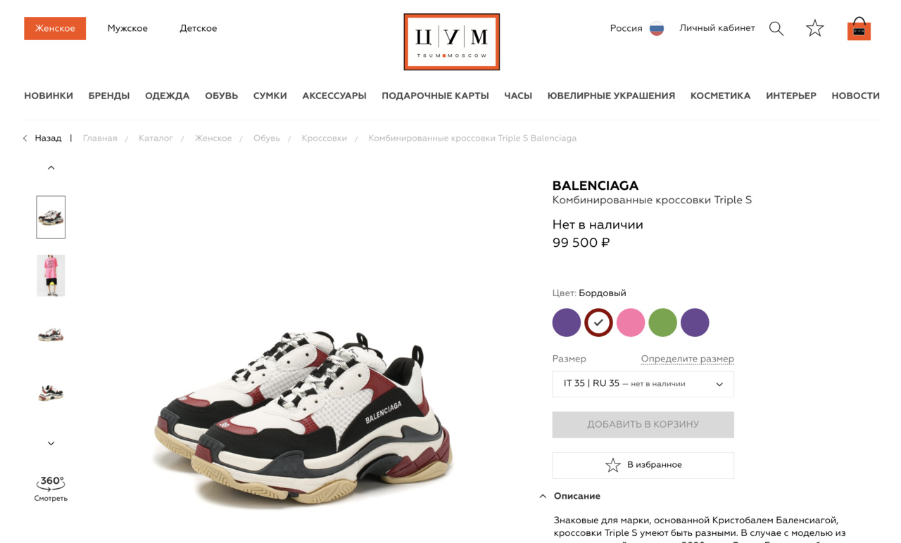 "Triple S - самая значимая модель кроссовок люксового сегмента десятилетия. Фактически именно Triple S стали одним из родоначальников тренда на кроссовки в ярко выраженном спортивном стиле от топовых домов моды, запустив целое направление которое затем взорвало всю фэшн-индустрию. Когда первые Triple S появились на страницах журналов и в модных инстраграммах, передовые поклонники моды переплачивали сумасшедшие суммы, чтобы достать редкую пару; а другие бренды и дизайнеры копировали их узнаваемую массивную подошву. Сегодня Triple S стали частью постоянной коллекции Balenciaga."