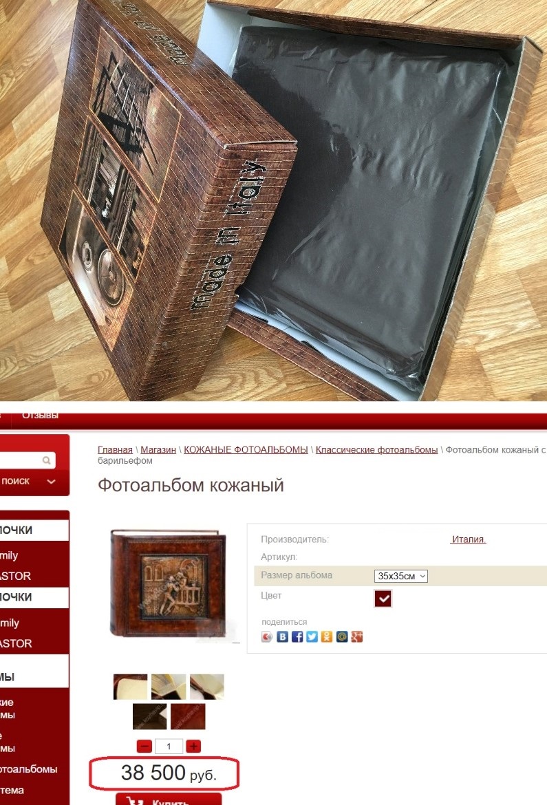 В продаже новый большой кожаный фотоальбом с барельефом и тиснением. Производство Италия. Ручная работа. Листы цвета «слоновой кости», каждая страница проложена пергаментом. Фотографии размещаются в любом порядке, разных форматов.Материал - натуральная кожа. Шикарное качество, размер 35см х 35см.В комплекте фотоальбом, микрофибра, пакет, коробка.