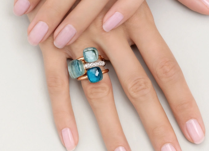 КОЛЬЦО *POMELLATO* ANELLO NUDO В РОЗОВОМ ЗОЛОТЕ С ГОЛУБЫМ ТОПАЗОМ