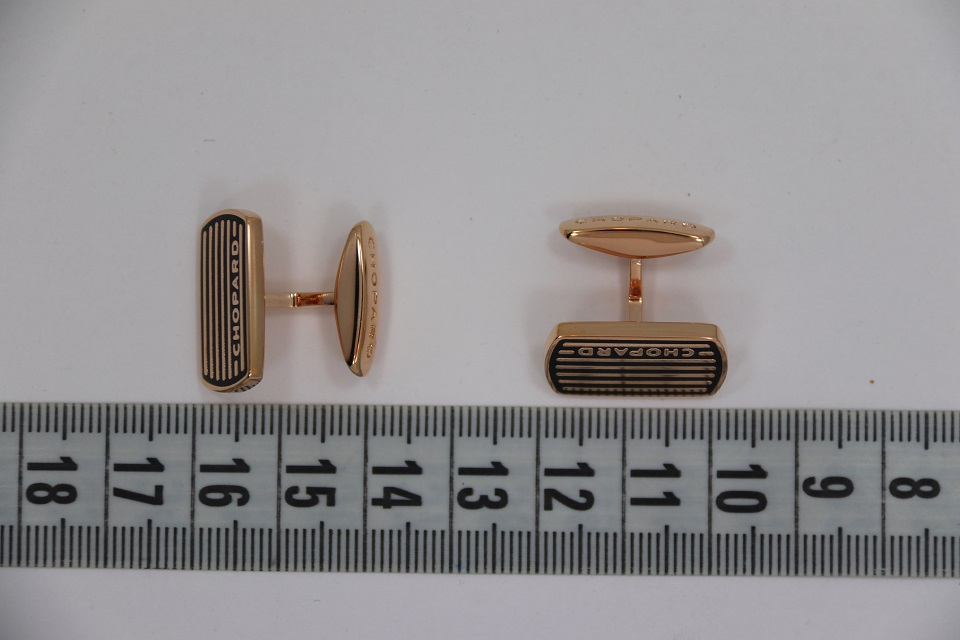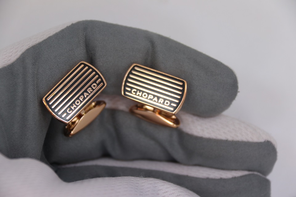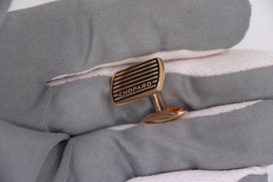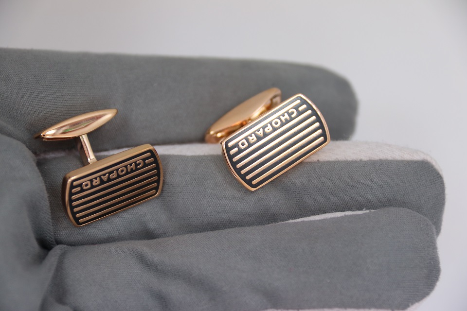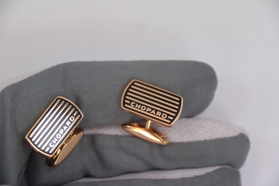 Истинная элегантность проявляется в деталях. Эти рафинированные запонки выполнены в изысканном сдержанном стиле, присущем мужским коллекциям Chopard. Их дизайн отсылает к миру классических автогонок, напоминая о бушующих на трассе эмоциях. Эффектный контраст, образуемый сочетанием черного лака и стали с искусно выполненной отделкой из розового золота, подчеркивает яркий характер изделия.
