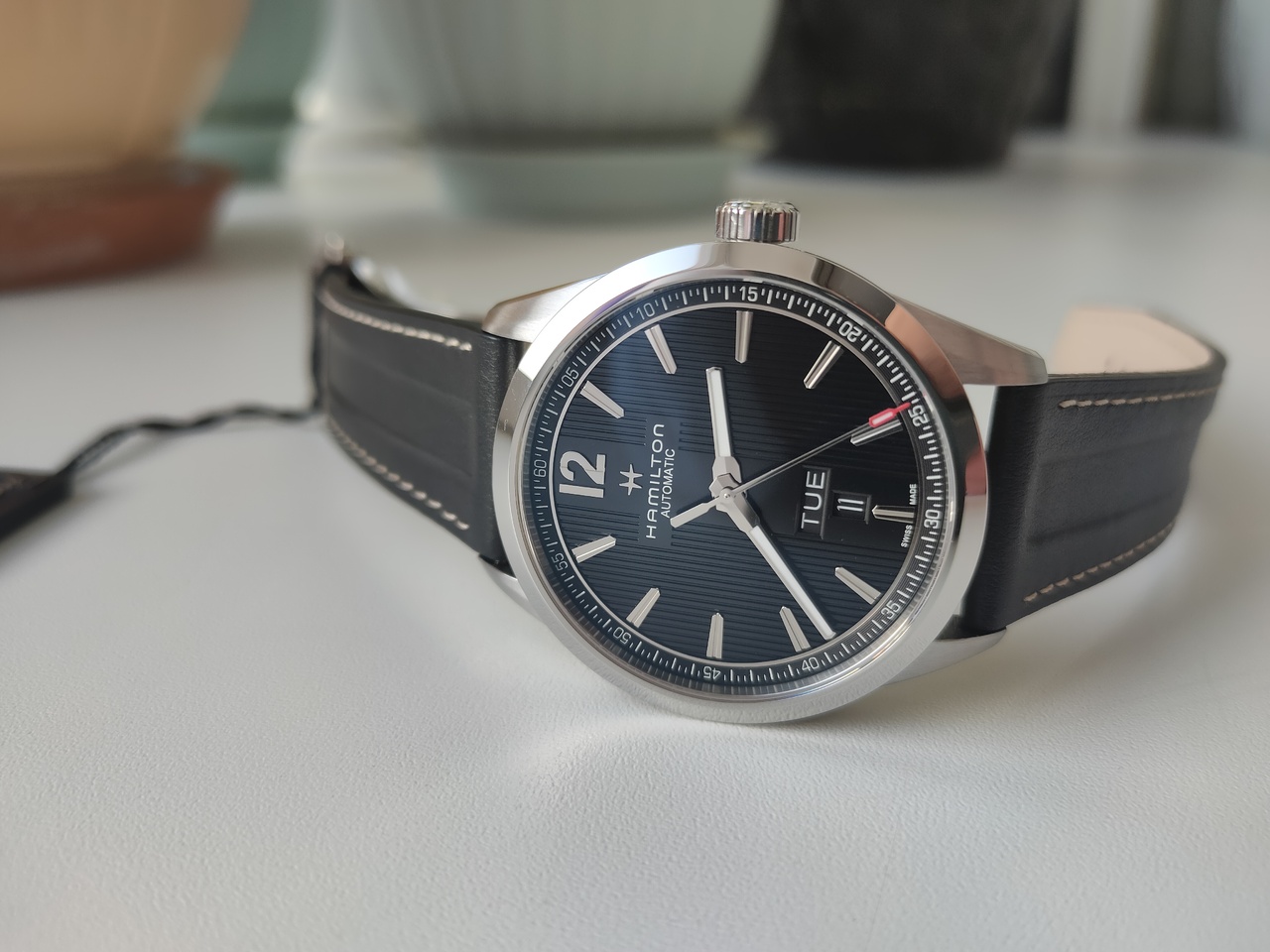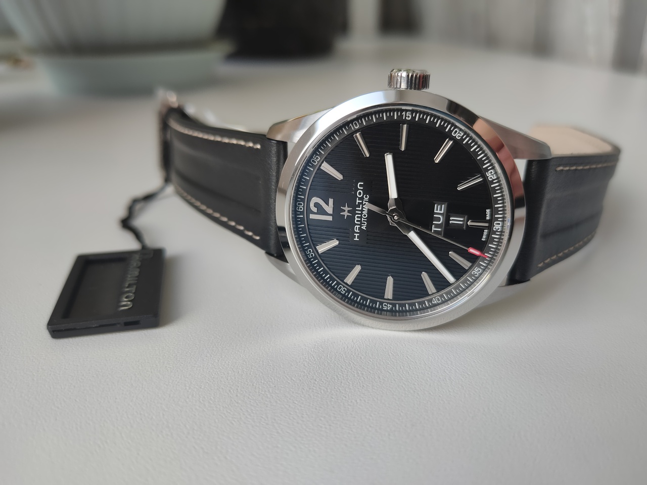 В продаже абсолютный бестселлер в черном исполнении. Мало кто сможет предложить в данном ценовом диапазоне столь высокий уровень соотношения цены и качества. Никаких компромиссов. Запас хода 80 часов. Детально проработанный цифер просто бомба - накладные метки, сайдинг, указатели даты и дня недели. Отличный черный кожаный ремешок с отстрочкой и клипсой раскрытия. В общем, берешь эти часы в руки и понимаешь - ВЕЩЬ