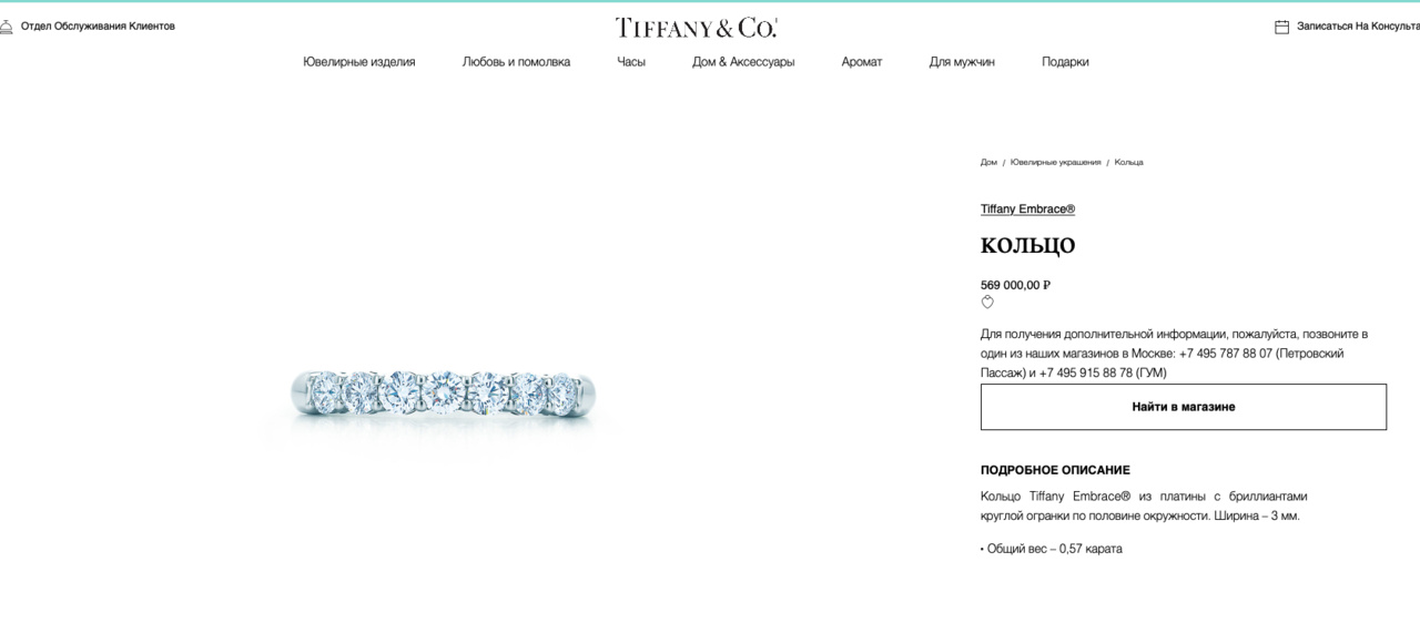 ОБРУЧАЛЬНОЕ КОЛЬЦО *TIFFANY* EMBRACE® ИЗ ПЛАТИНЫ С БРИЛЛИАНТАМИ 0,57 ct.