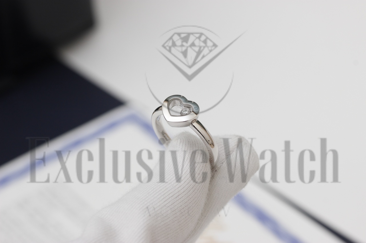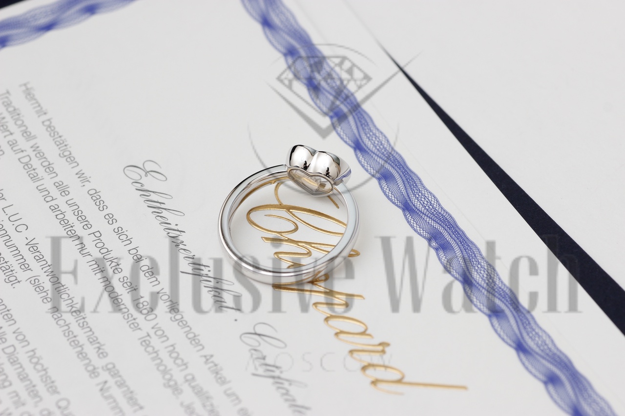 КОЛЬЦО * CHOPARD * HAPPY DIAMONDS ICONS HEART В БЕЛОМ ЗОЛОТЕ С ПЛАВАЮЩИМ БРИЛЛИАНТОМ