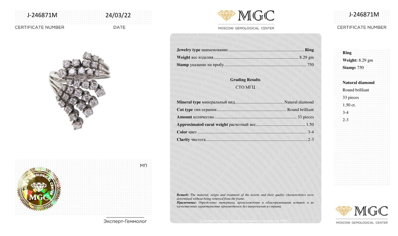 Кольцо из белого золота с бриллиантами 1,5 карат (сертификат МГЦ)