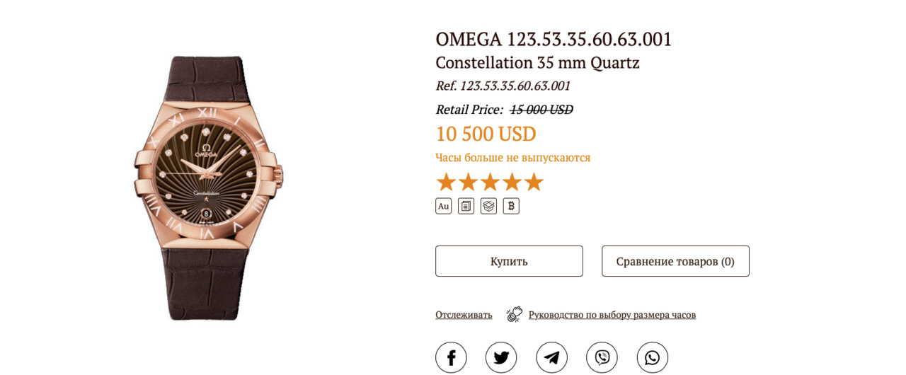 ШОКОЛАДНАЯ *OMEGA* OMEGA CONSTELLATION 35 MM QUARTZ 123.53.35.60.63.001/РОЗОВОЕ ЗОЛОТО - Часовой форум Watch.ru