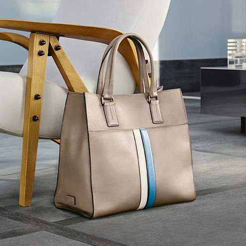 Отличительная черта коллекции Double Stripe: все сумки этой коллекции имеют узнаваемый декор из двух вертикальных кожаных полос (double stripe) - в тон сумки или наоборот контрастных цветных, а также достаточно крупный размер - каждая модель коллекции это одновременно и универсальная повседневная сумка, и сумка которую можно брать в недолгие поездки. Коллекция так и позиционируется: универсальные сумки "для работы и отдыха".