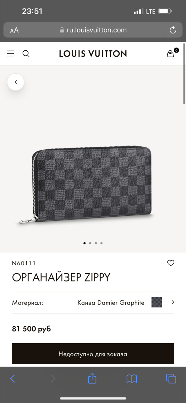 Органайзер LOUIS VUITTON Zippy Damier Graphite