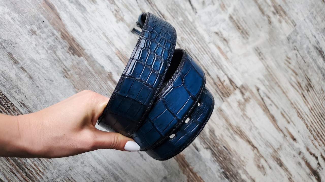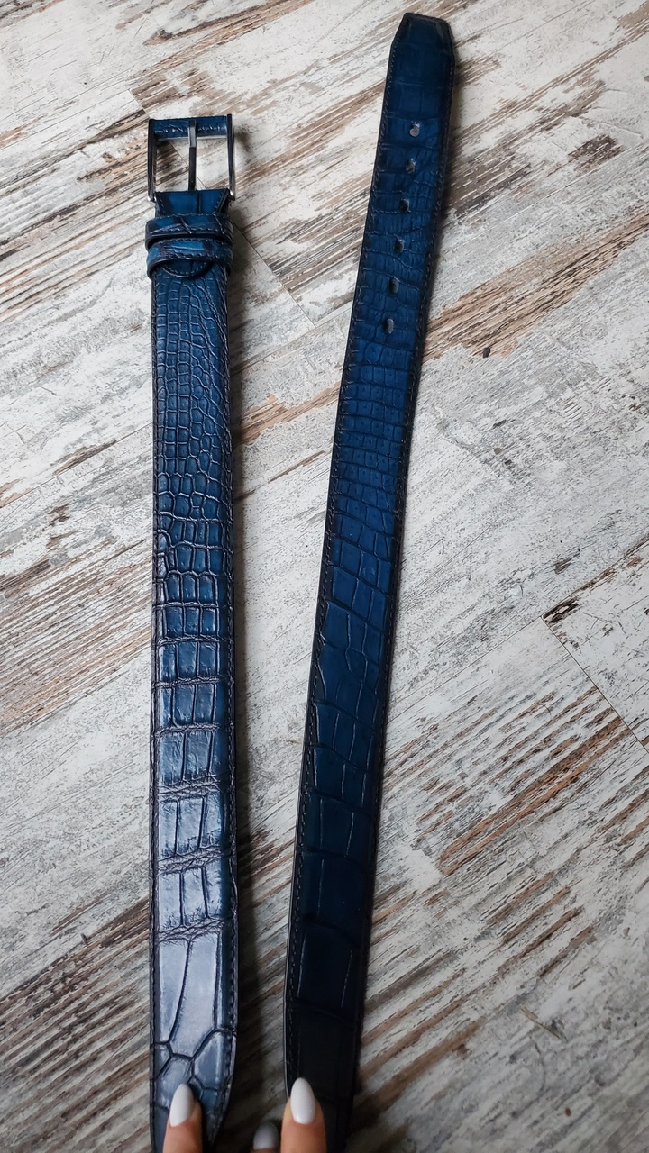 Материал: 100% ЦЕЛЬНОКРОЙНАЯ КОЖА НИЛЬСКОГО КРОКОДИЛА высочайшего качества выделки, вырезана на всю длину шкуры рептилии, без стыков, что позволит ремню служить исключительно долго без потери своих эксплуатационных характеристик.