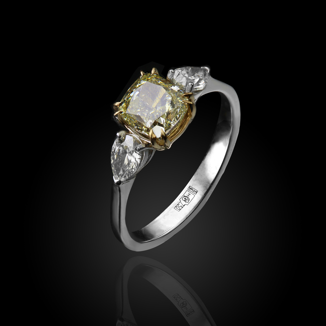 Центральный бриллиант весом 1,5 карат, цвет Fancy Light Yellow, чистота VS2 (5)