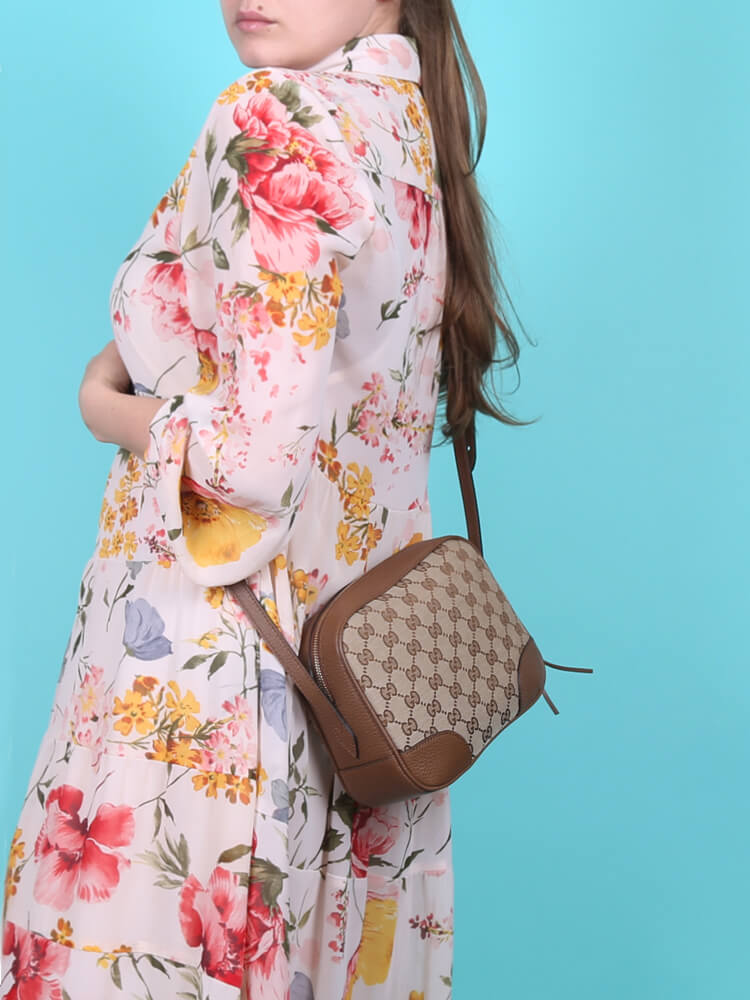 "Чрезвычайно симпатичная, компактная и неожиданно универсальная. Эта сумка компактна по габаритам, но вместительна благодаря широкому дну. Ее можно носить на плече или через плечо. Лаконичный классический силуэт украшен декоративным переплетеным кожаным хлястиком и золотистой подвеской-шармом в виде лого GG. Просторное внутреннее отделение дополнено встроенным кармашком-кошельком с 8 слотами для карт. Модель изготовлена из легендарной канвы GG Supreme и фактурной кожи коричневого цвета изысканного оттенка "лесной орех".