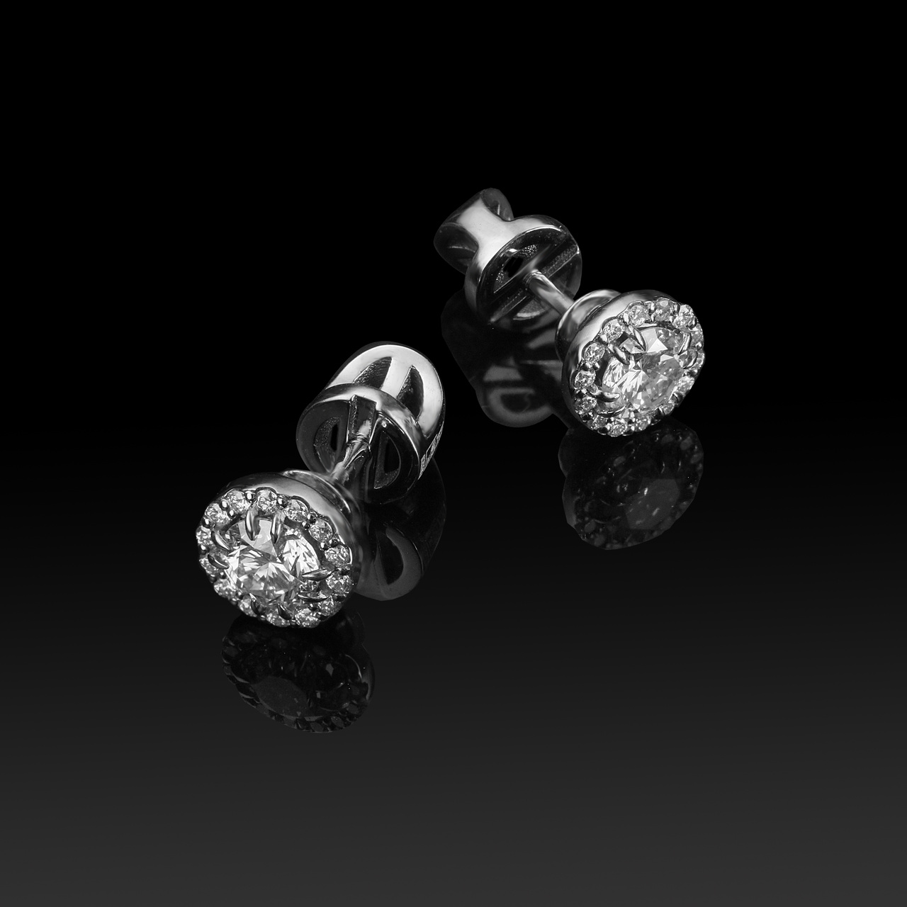 Серьги-пуссеты из белого золота с бриллиантами 0,75 карат (сертификат МГЦ)