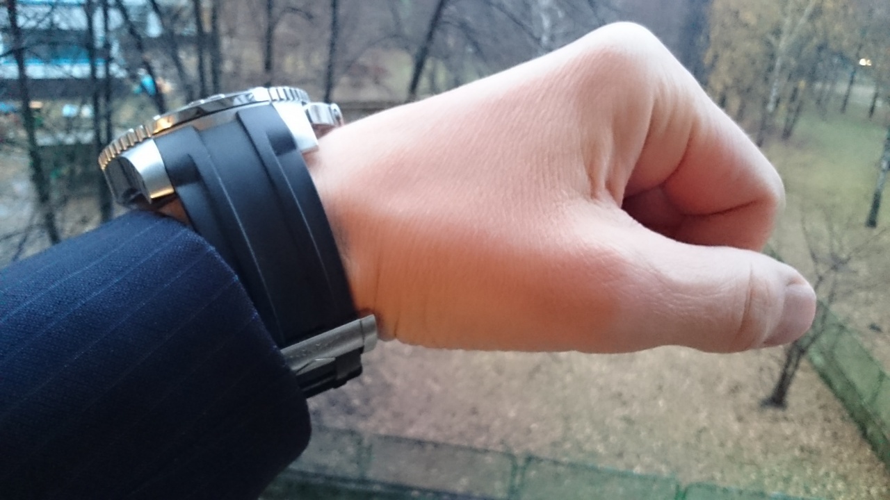 Каучуковый ремешок - вещь удобная и универсальная под любую эксплуатацию. Часы на каучуке даже как-то выглядеть стали благороднее и дороже, чем на браслете. Минус один - каучук подгоняется по размеру руки один раз, после чего все лишнее обрезается раз и навсегда, соответственно если в будущем планируете продавать часы, не на каждую руку подойдут. Хотя у Вас рука вроде не маленькая, так что этот минус наверное не актуален. Удачи!