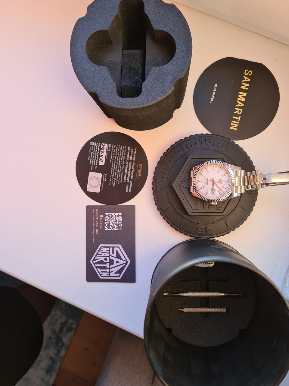 Корона: Завинчивающаяся заводная головка с Сан-Мартин шестиугольник логотип