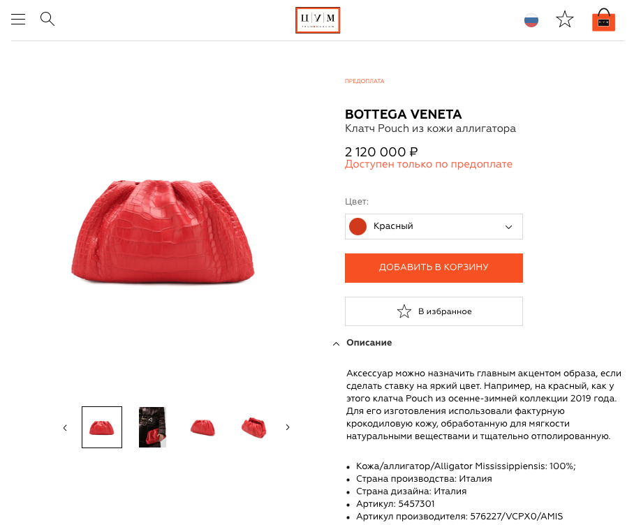 Новая Bottega Veneta Pouch/ Красная/ Кожа аллигатора