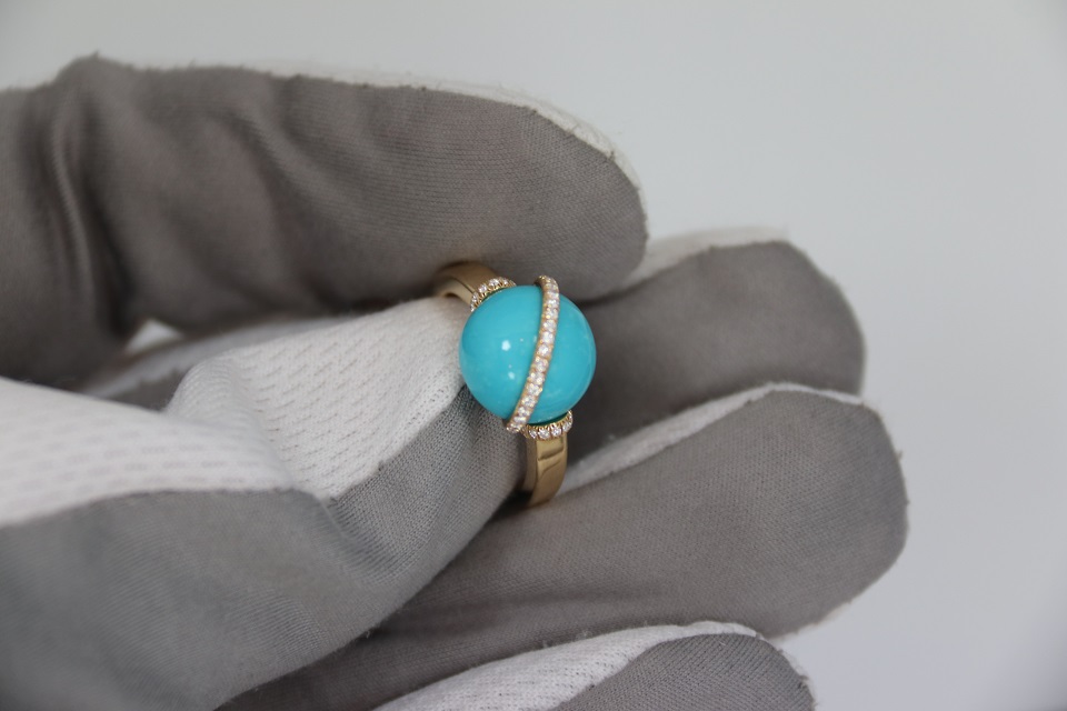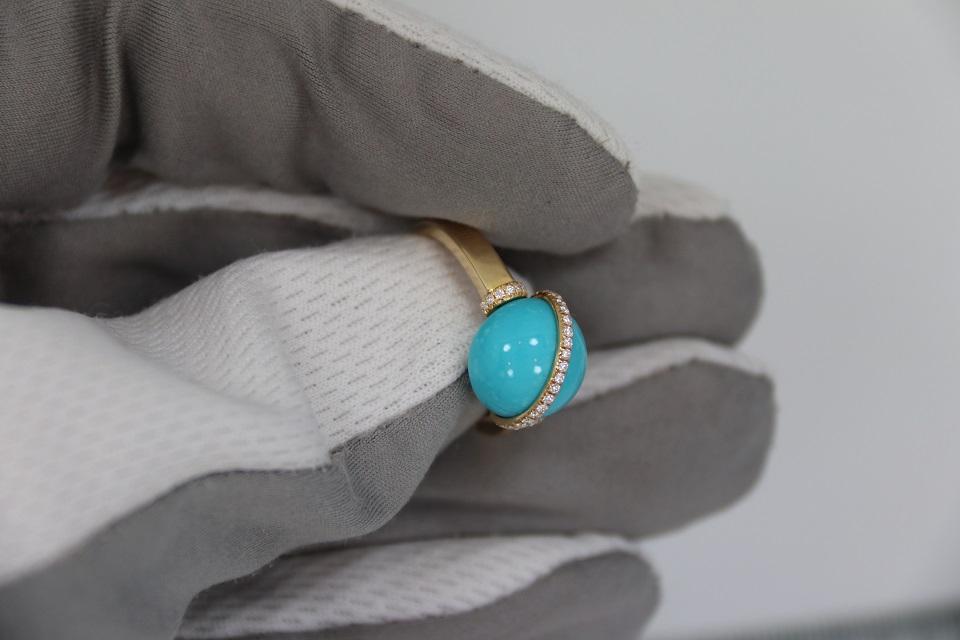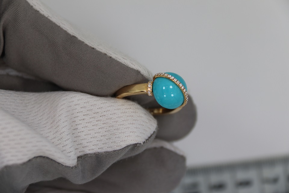 Неспешно продается новое золотое женское кольцо из золота 18к 750 пробы с бриллиантами и бирюзой FRED Baie Des Anges 18K Yellow Gold * ЖЕЛТОЕ ЗОЛОТО 18К / 750 * РОССИЙСКИЙ РАЗМЕР 17.80 * ВЕС 5.74 * БРИЛЛИАНТЫ * ГОЛУБАЯ БИРЮЗА * СТОИМОСТЬ 180.000 *