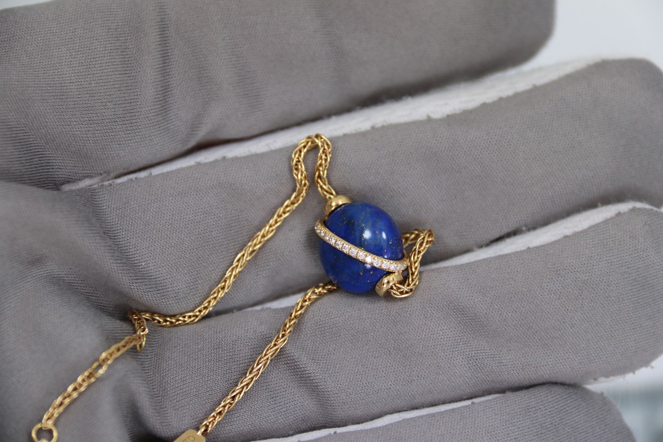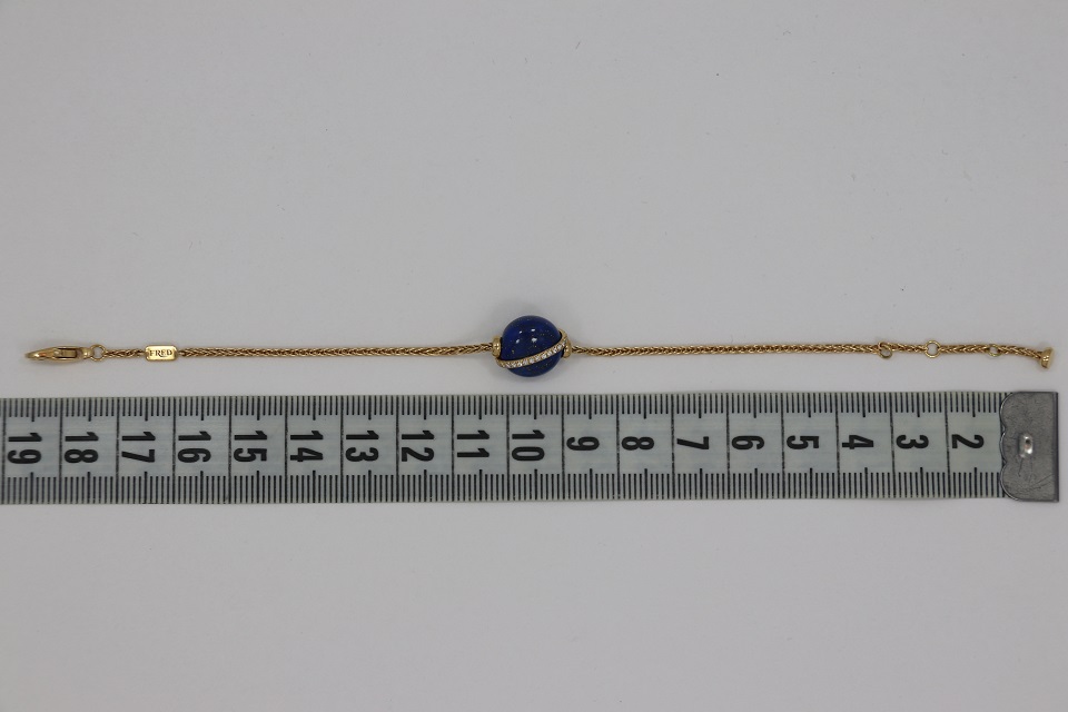 Неспешно продается новый золотой женской браслет из золота 18к 750 пробы с бриллиантами и лазуритом