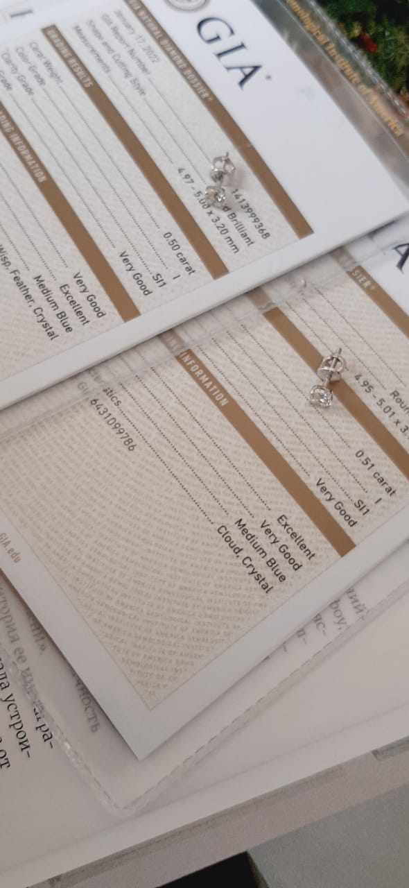 Продаются серьги-пуссеты с бриллиантами по 0,50 карат (сертификаты GIA)!