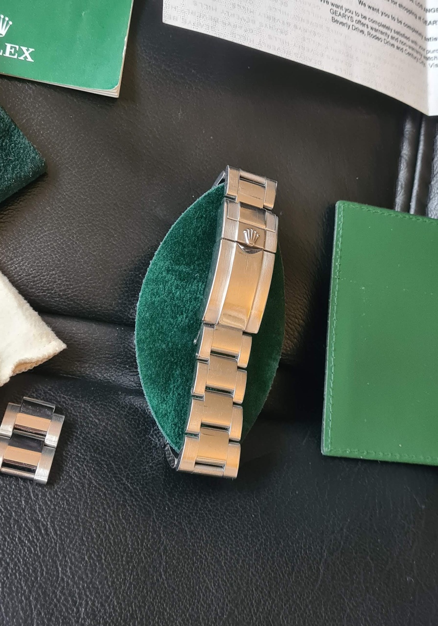 Браслет Oyster, плоские трехрядные звенья, сталь 904L. Застежка безопасности Oysterlock с раскладывающейся пряжкой и удлиняющим до 5 мм звеном Easylink.