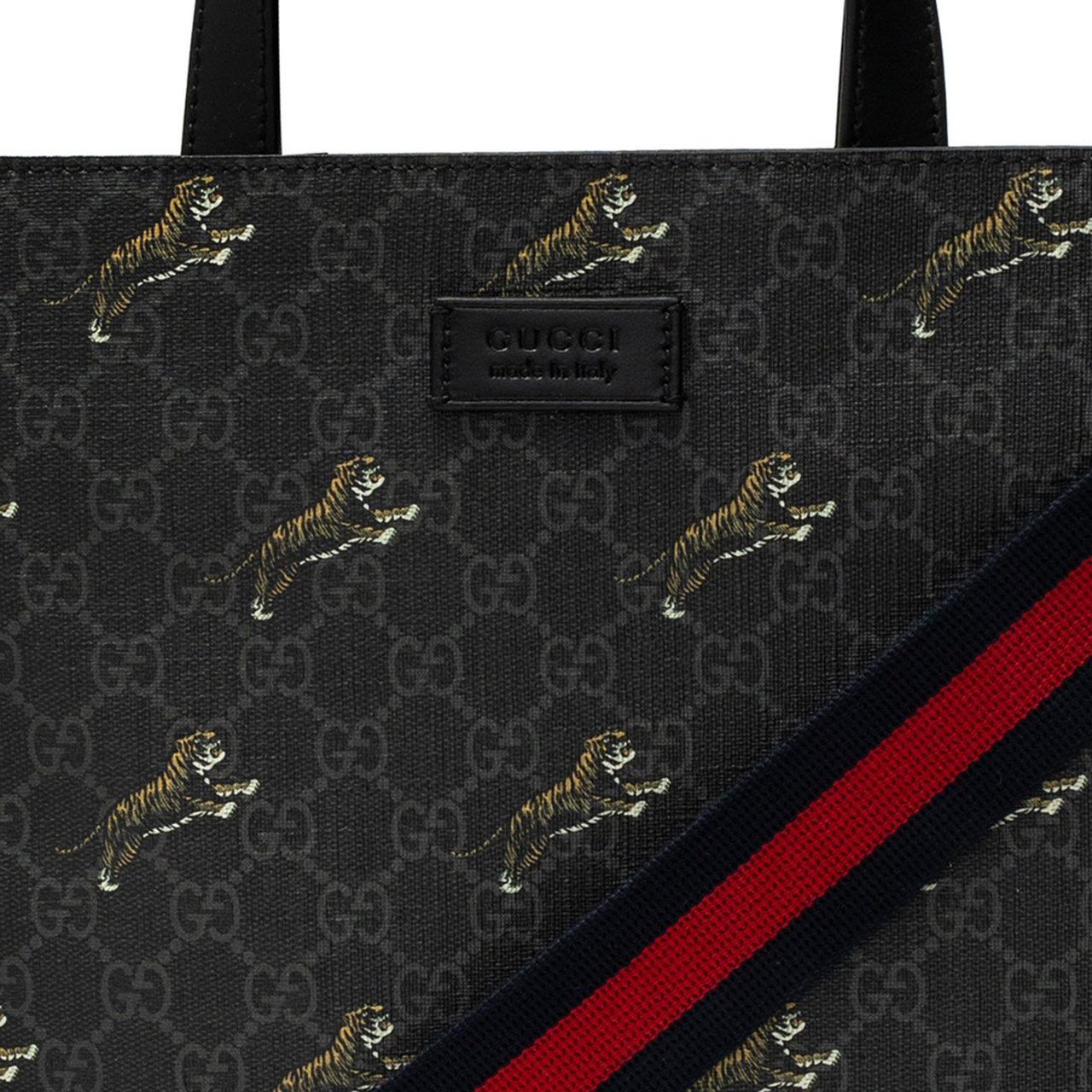 - Фирменная канва Gucci GG Supreme дополненная принтом с тиграми