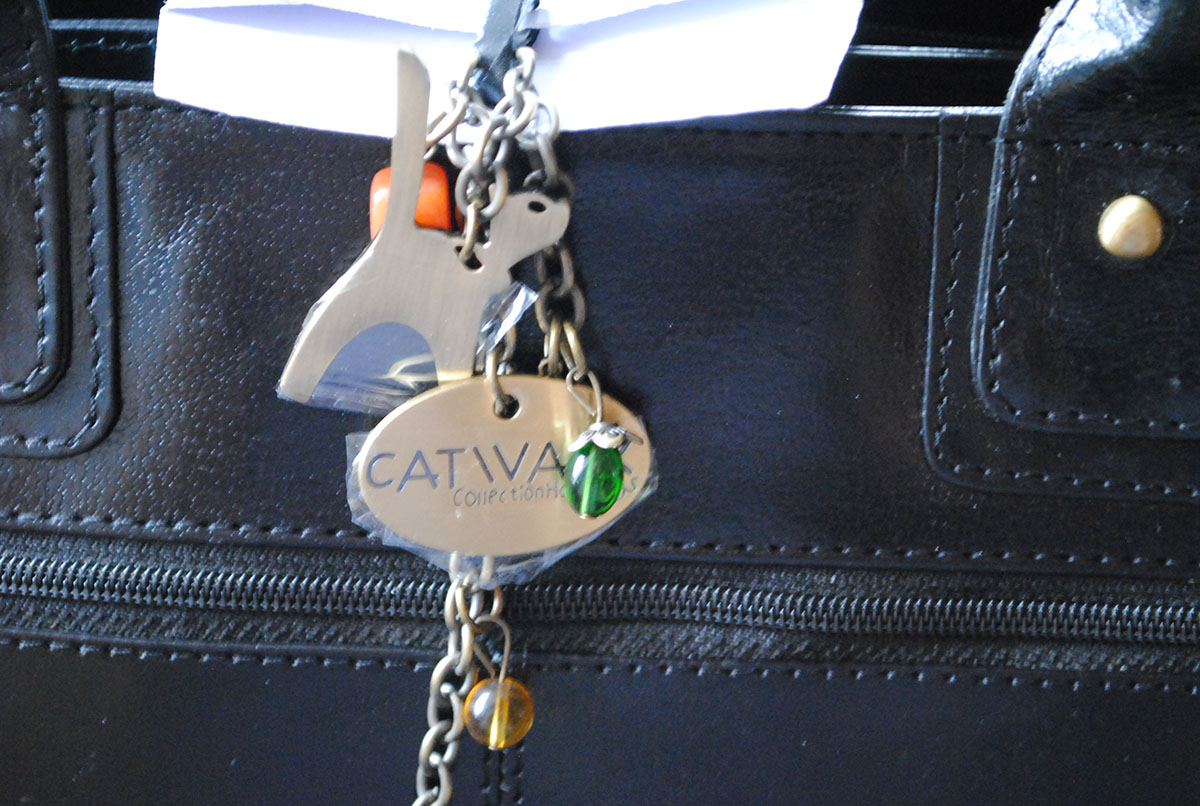Сумка оснащена фирменным браслетом с подвеской в виде кота и фирменным защитным мешочком.