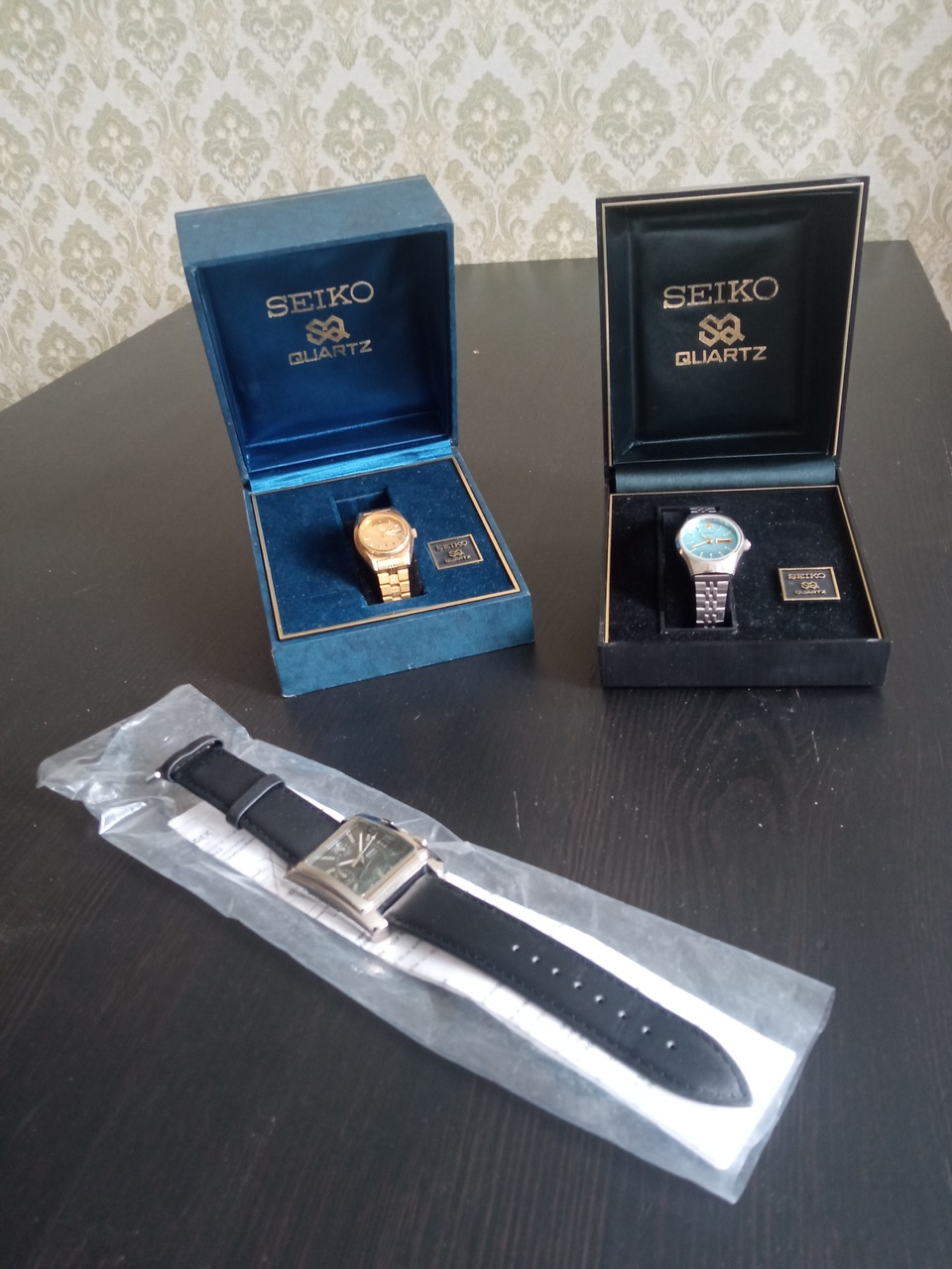 Приветствую всех! Прошу помощи в оценке женских наручных часов Seiko orient, те что с голубым циферблатом новые, с золотистым были в эксплуатации.
