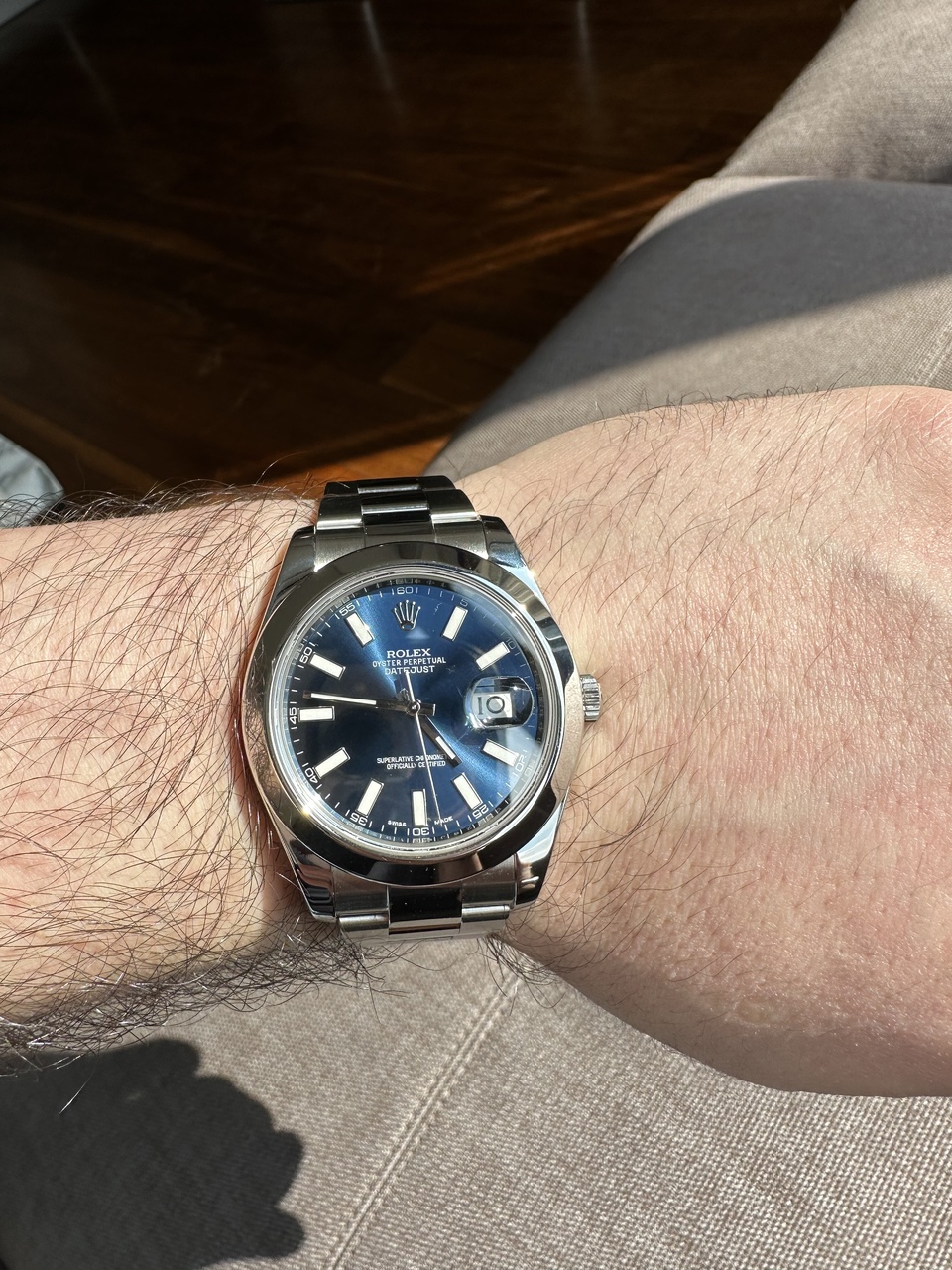 Сразу с двумя браслетами. Jubille (новый) и Oyster. Браслет покупался для других Datejust, но не пригодился.