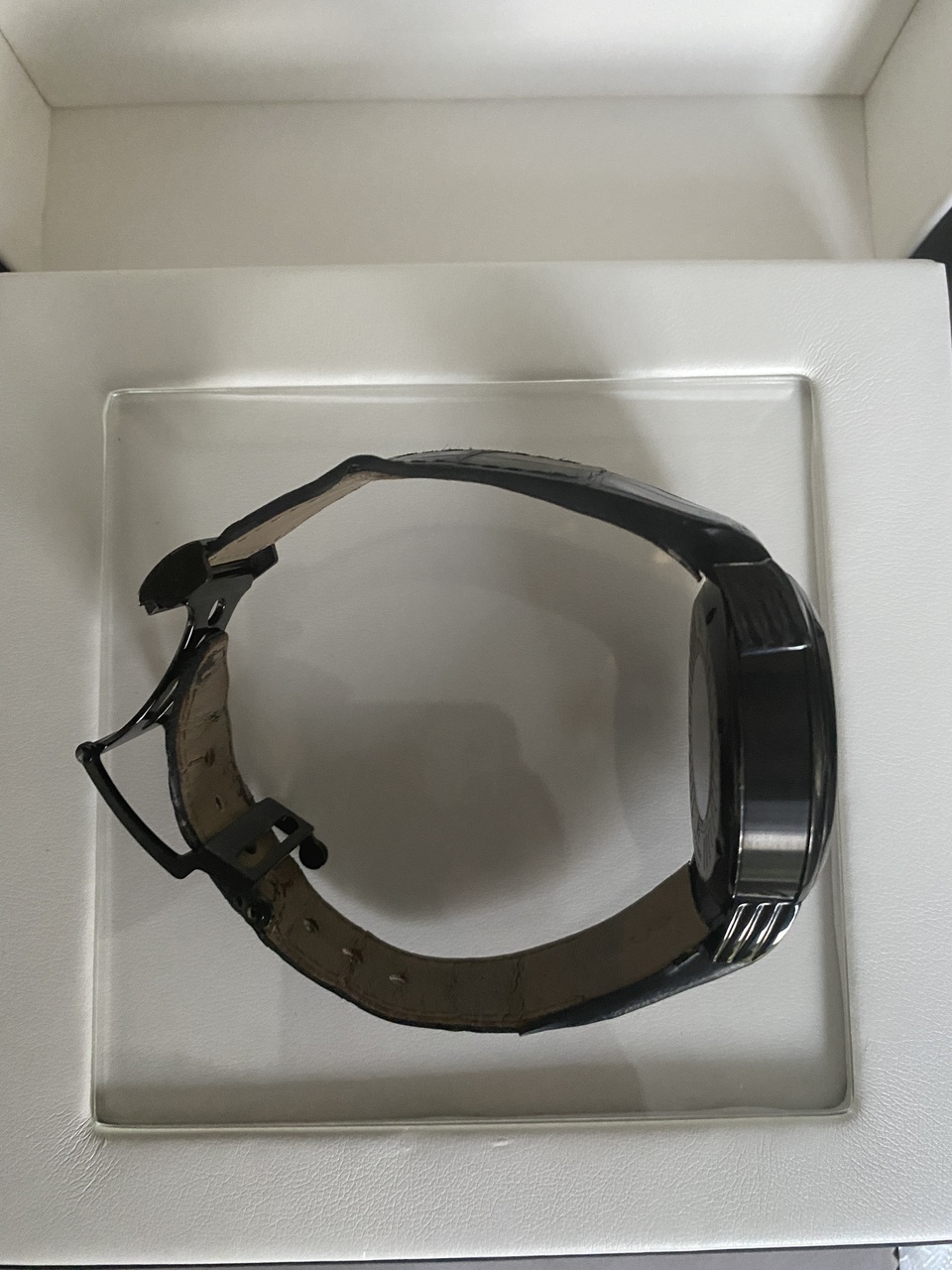 Корпус: 47 мм, высота 14 мм, из стали, сапфировое стекло с антибликовым покрытием. Сделано покрытие корпуса черным PVD в сервисе «Цюрих» (Москва).