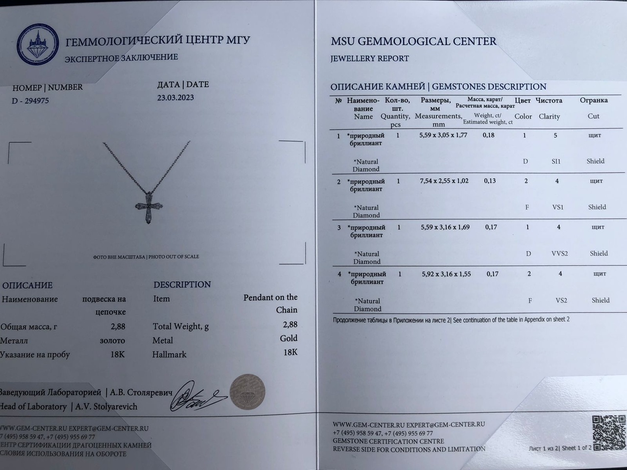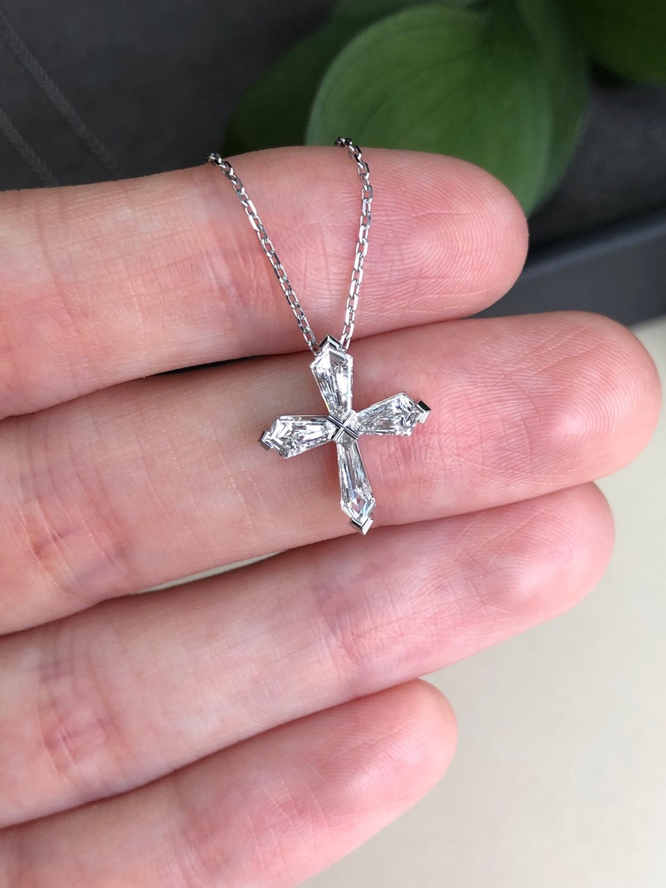 Подвеска крест белое золото с бриллиантами огранки «Shield» 0.65ct (цвет 1-2) новая (сертификат МГУ) недорого