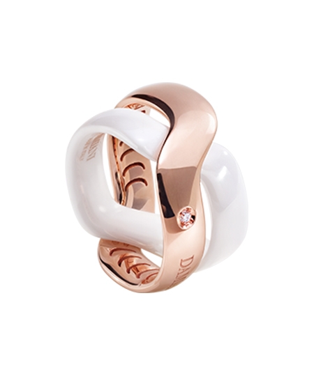 Неспешно продается новое золотое женское бриллиантовое кольцо из розового золота и белой керамики с бриллиантом Damiani Abbraccio.