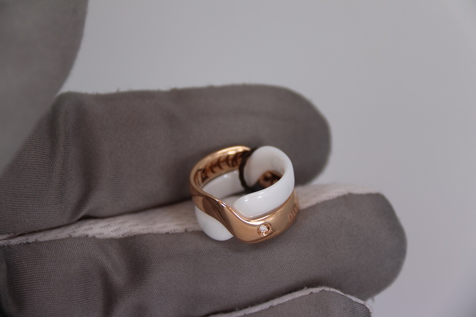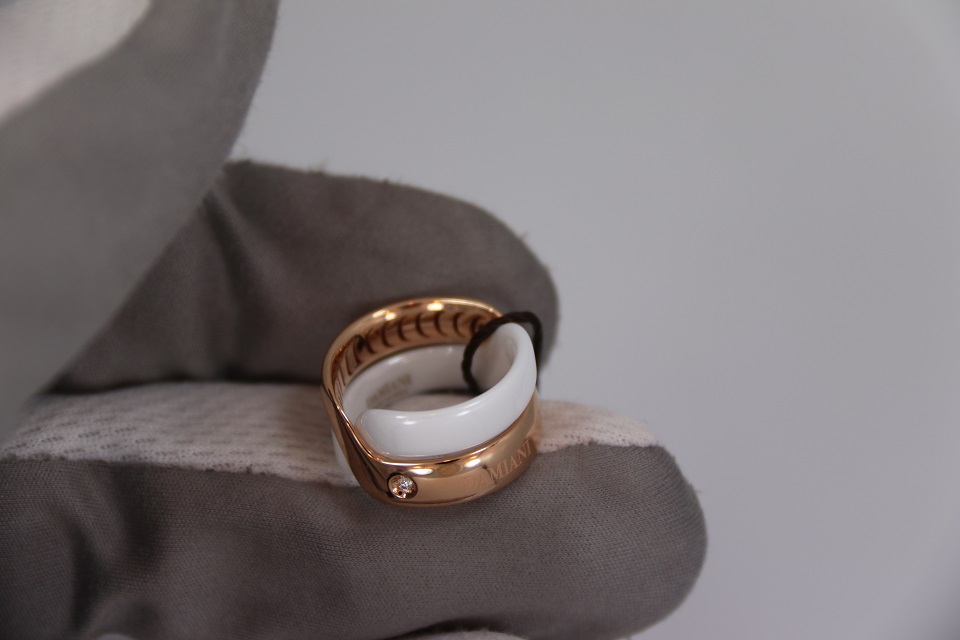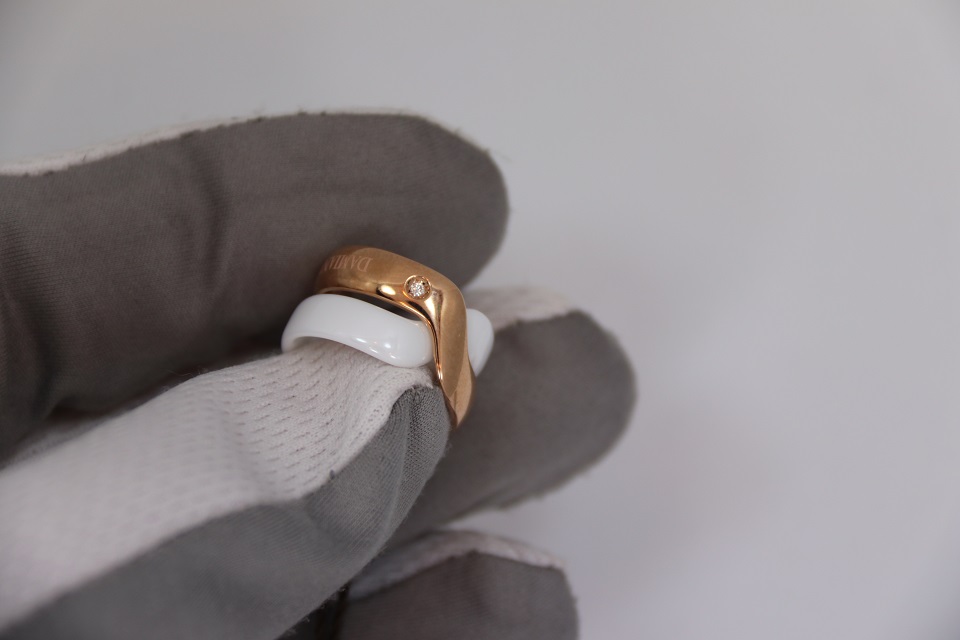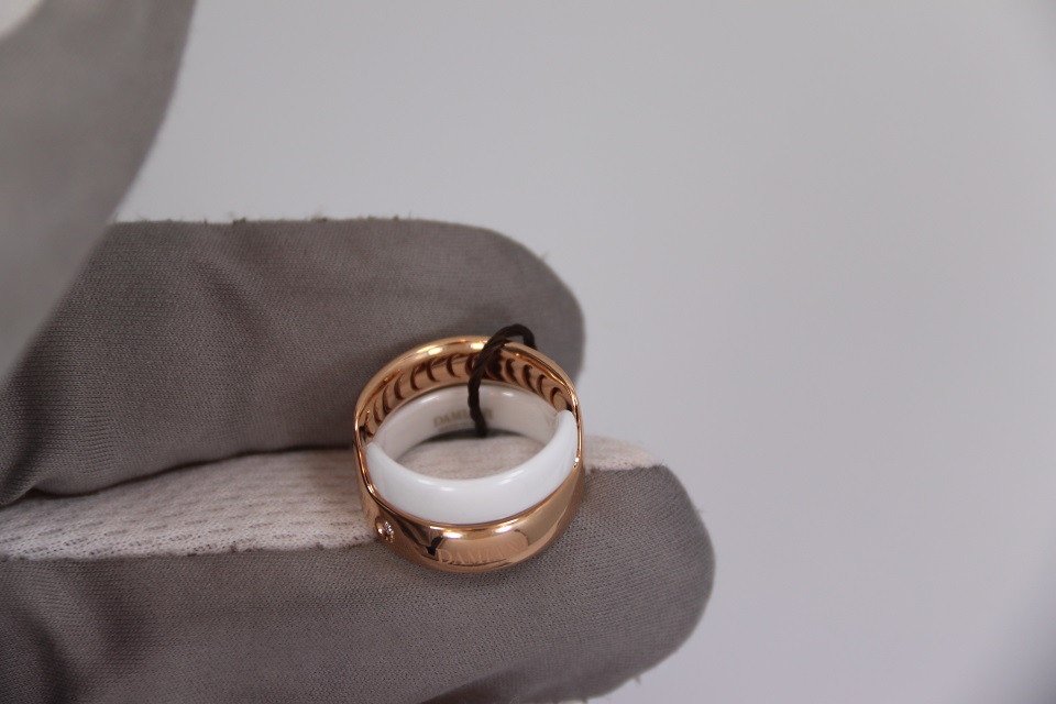< ЗОЛОТОЕ КОЛЬЦО > Damiani Abbraccio 18k Rose Gold, Ceramic & Diamond * БЕЛАЯ КЕРАМИКА * РОЗОВОЕ ЗОЛОТО 18K / 750 * БРИЛЛИАНТ * РИТЕЙЛ В США $2.290 * ПРОДАЖА 80.000 *