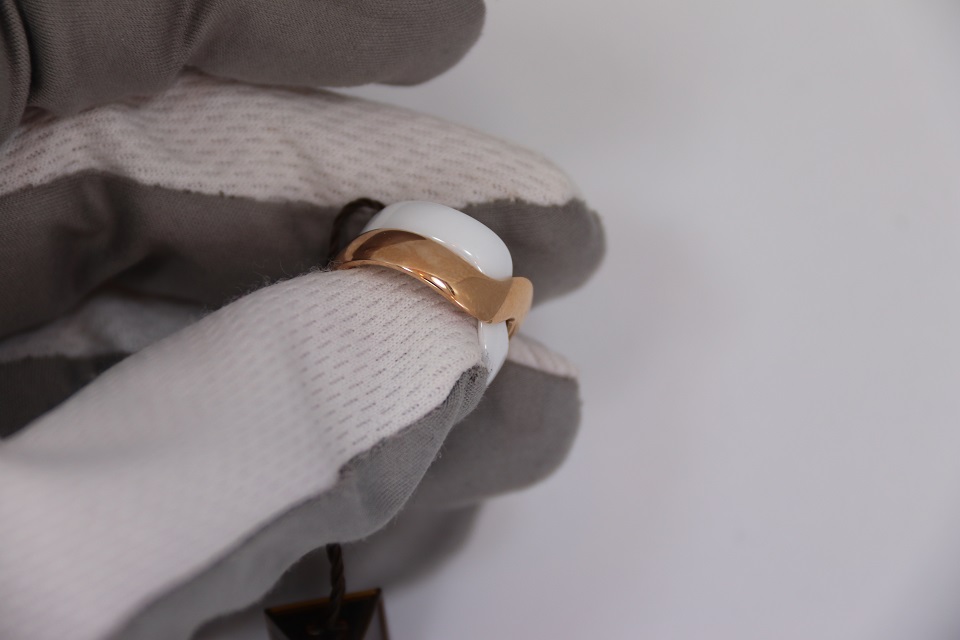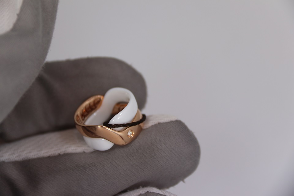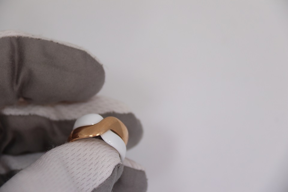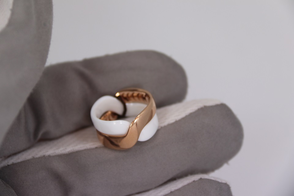 Кольцо: белая керамика, розовое золото 18к / 750 пробы.
