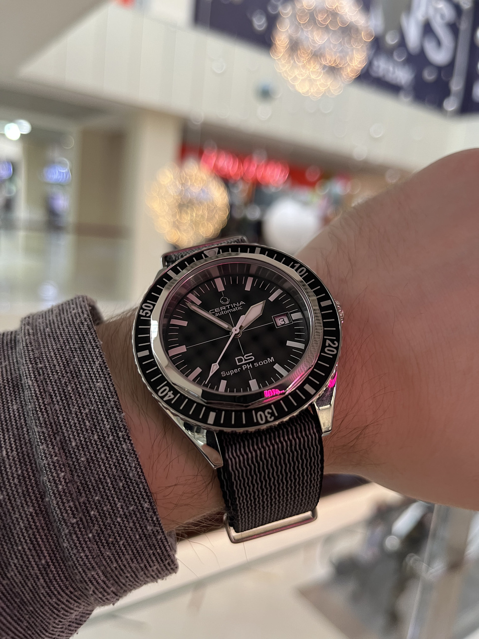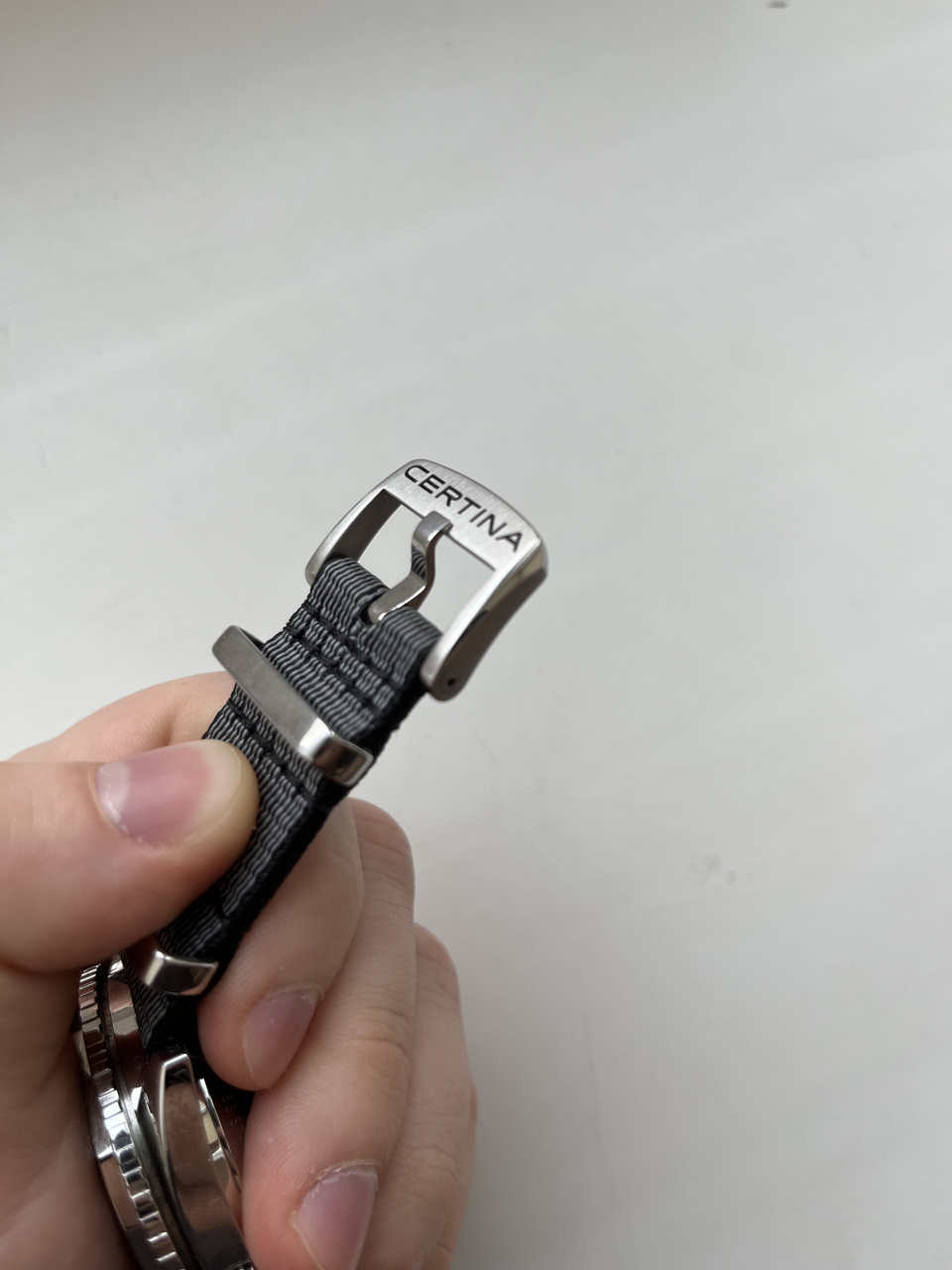 Что еще приятно в этих часах, ремешок. Не буду повторяться с рассказами про tideocean, но сделан реально достойно. Но больше всего внимание мое привлекла пряжка - фото приложу, но не смог сделать его качественным чтоб передать всю красоту. Если со слов - на пряжке сочетание сатинированной стали и полированной и надпись CERTINA черным углублением.