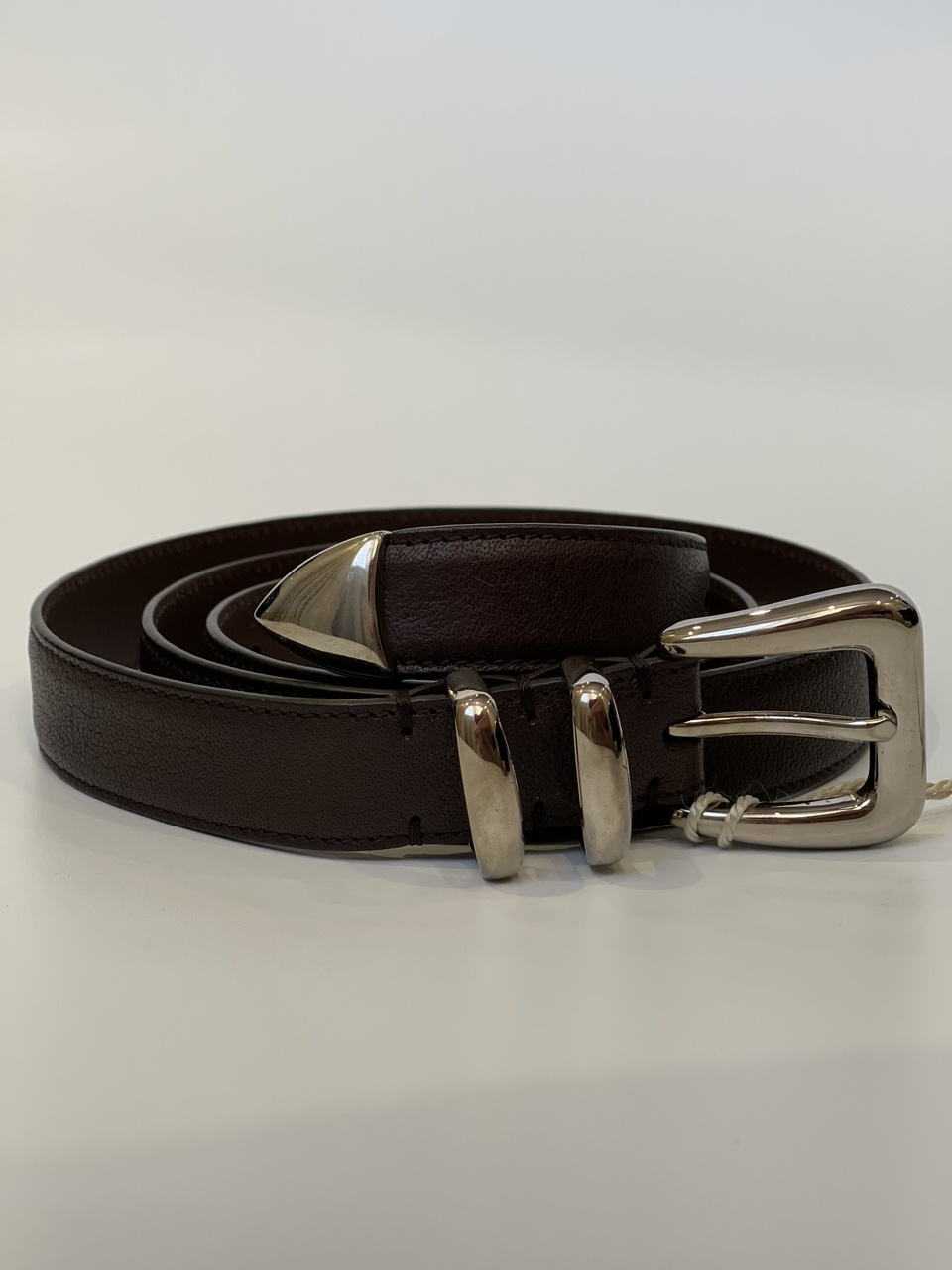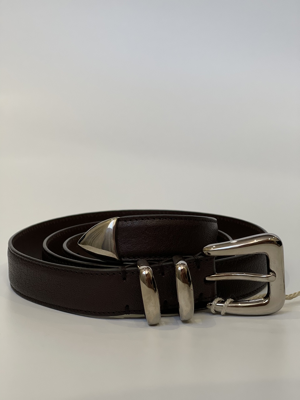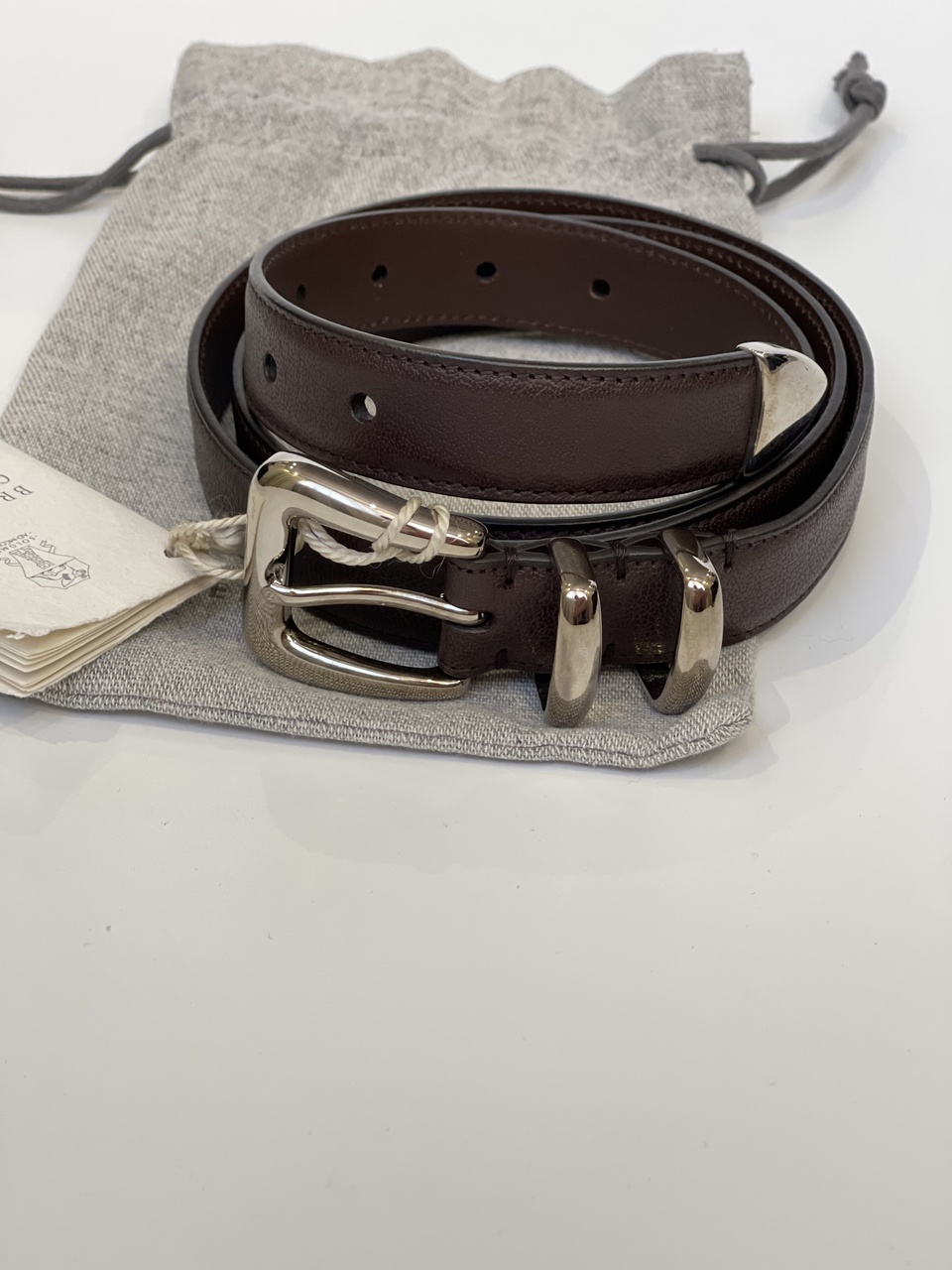 BRUNELLO CUCINELLI новый мужской ремень из телячьей кожи /двойная шлёвка и наконечник/