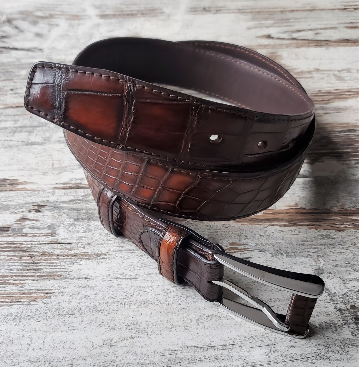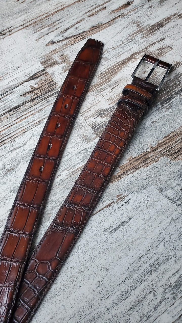 Материал: 100% ЦЕЛЬНОКРОЙНАЯ КОЖА НИЛЬСКОГО КРОКОДИЛА высочайшего качества выделки, вырезана на всю длину шкуры рептилии, без стыков, что позволит ремню служить исключительно долго без потери своих эксплуатационных характеристик.