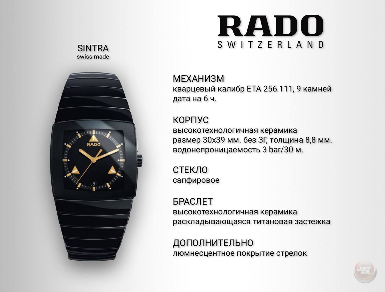 Rado это всемирно известный бренд, славящийся инновационным дизайном и использованием революционных материалов при создании красивых и надежных часов.