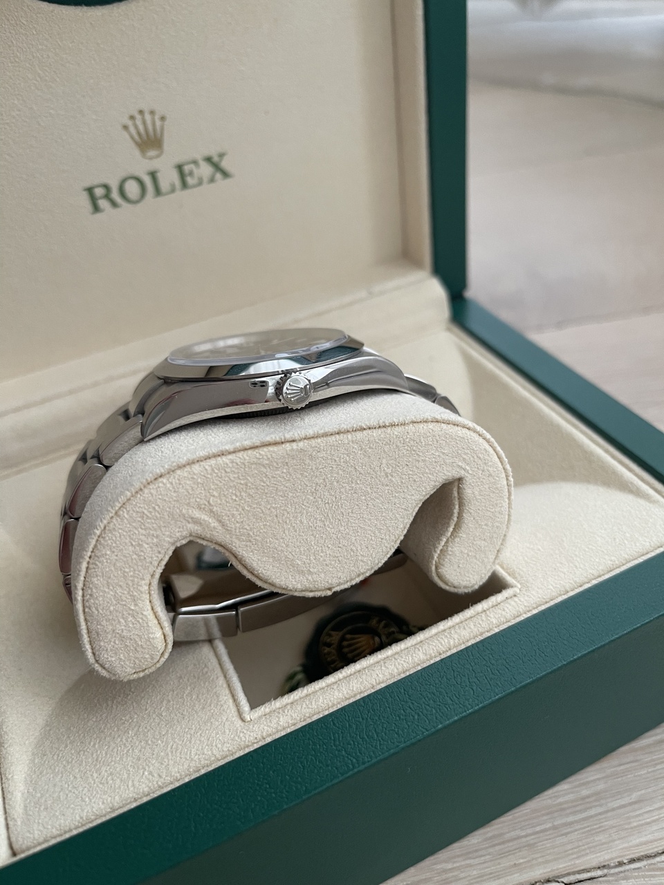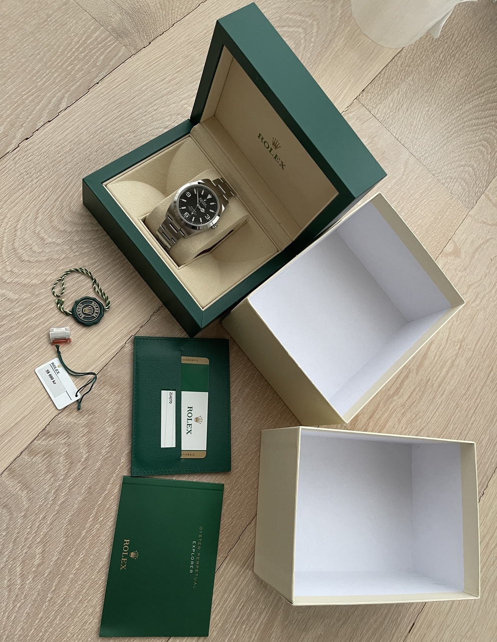 Замечательный тулвотч из спортивной коллекции Ролекс в размере 39 мм, под любой образ и одежду, абсолютно универсальный Эксплорер 1 референс 214270 в самой свежей версии мк2 с люмом на цифрах 3-6-9 и увеличенными стрелками. Полный комплект, на застежке наклеена защитная пленка , не полировались. Механизм мануфактурный хронометр cal. 3132. Водозащита 100 метров.