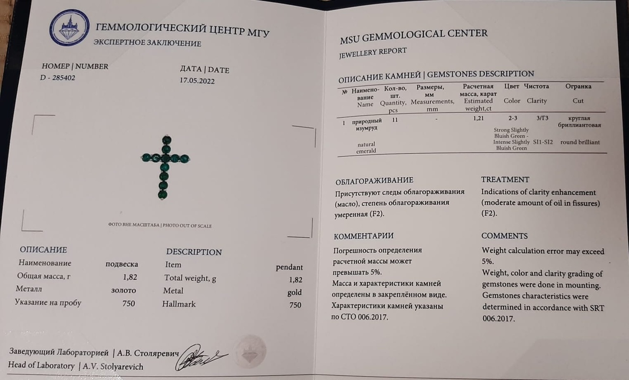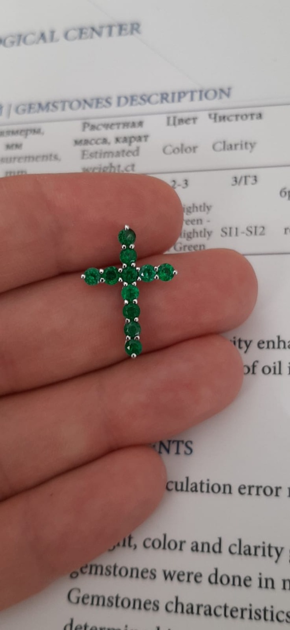 ПОДВЕСКА "КРЕСТ" с изумрудами 1,21 карата (аттестат МГУ)!