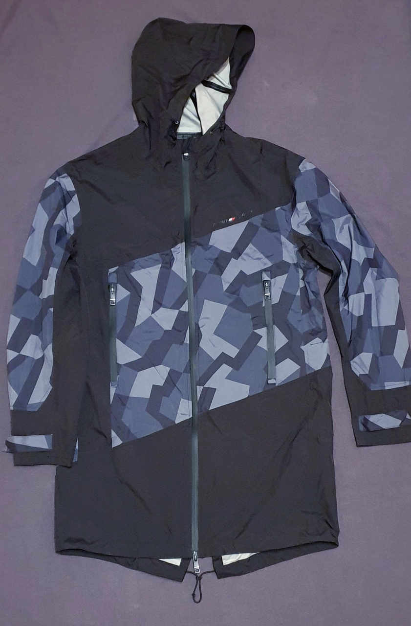 Конкретно с этой моделью Hilfiger попал в точку: спокойные и неброские цвета, принт оттенков серого, в сочетании с классическим кроем (так называемый fishtail) создают непреходящий дизайн. Куртка модная, но одновременно максимально утилитарная, простая и без навязчивых украшений, но притягивает внимание своей минималистической эстетикой. Можно по городу красиво прогуляться, либо на рыбалку по-взрослому с друзьями скататься, или отправиться на пробежку под дождиком - вещь работает.
