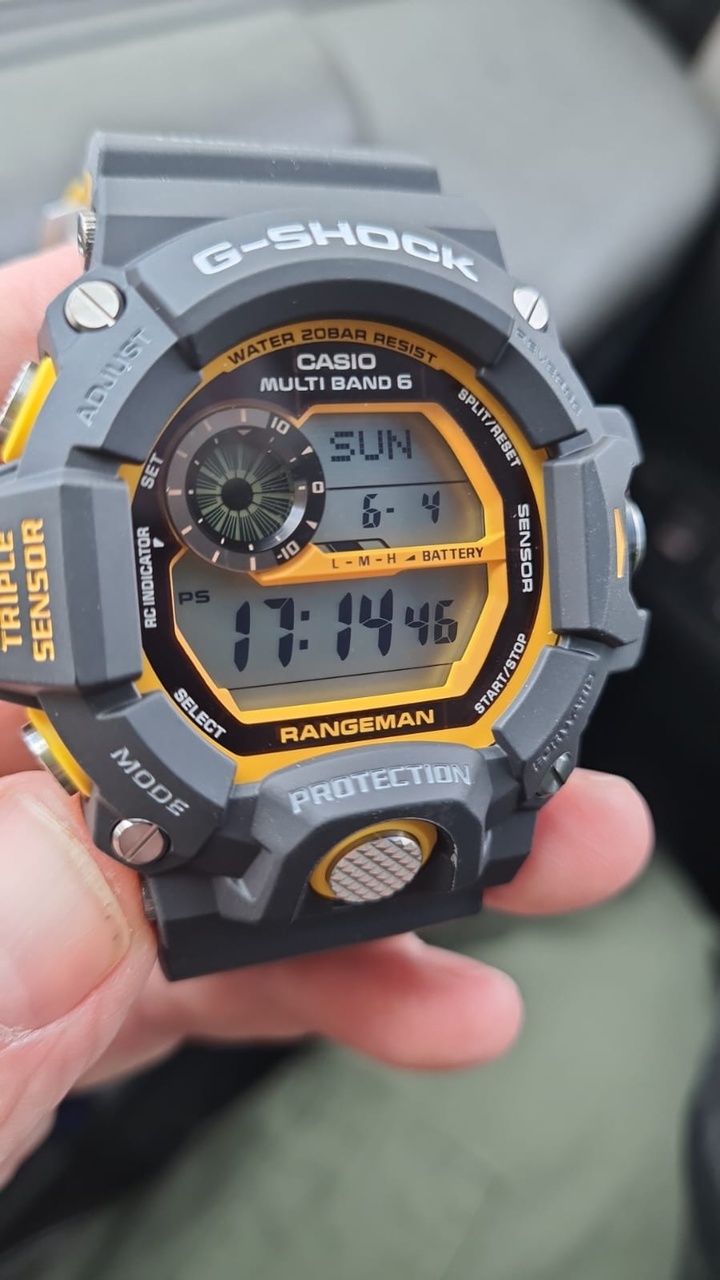 Продам Rangeman GW-9400YJ-1JF, вечный источник питания в виде солнечной батареи, тройной датчик (Triple Sensor): измерение давления и температуры воздуха, цифровой компас и высотомер, отображение восхода и заката Солнца, радио-синхронизация времени, водозащита в 200 метров.